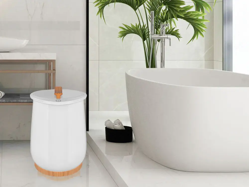 - Compact and Safe: Easy-carry and easy to move, the towel warmer features a compact design with a stylish round-shaped base. The bucket and lid are separable for quick cleaning, and it operates efficiently and quietly for user safety