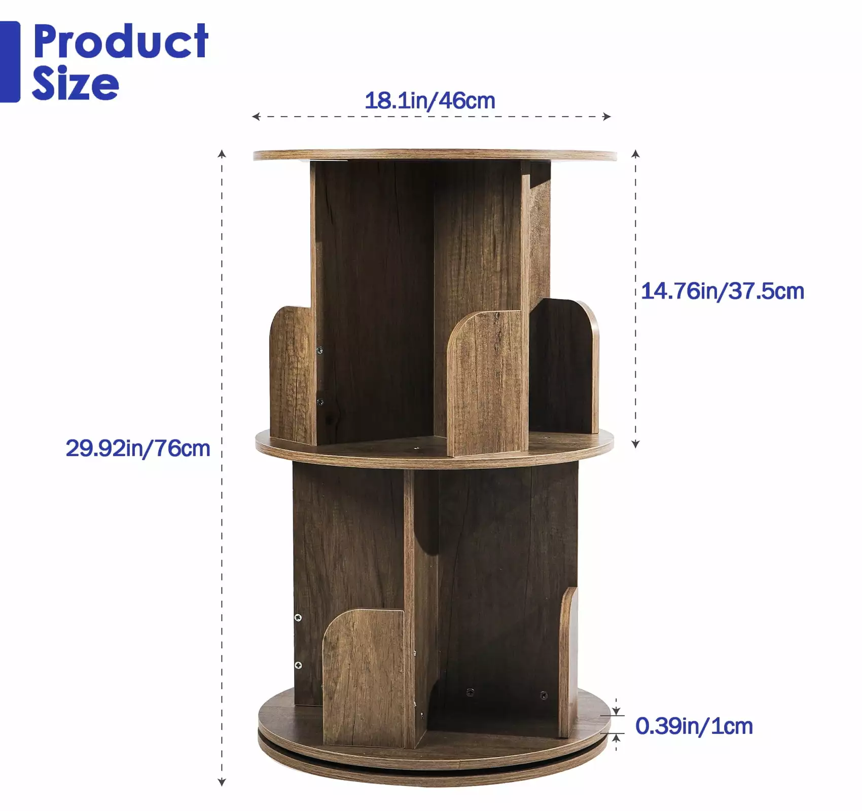 - Easy access to your books – you can assemble the rotating bookcase into one or two layers. The right bookshelf height can help stimulate interest in reading. Two shelves have 8 small compartments that can hold 40-50 medium-sized books. making your room look like a small library.