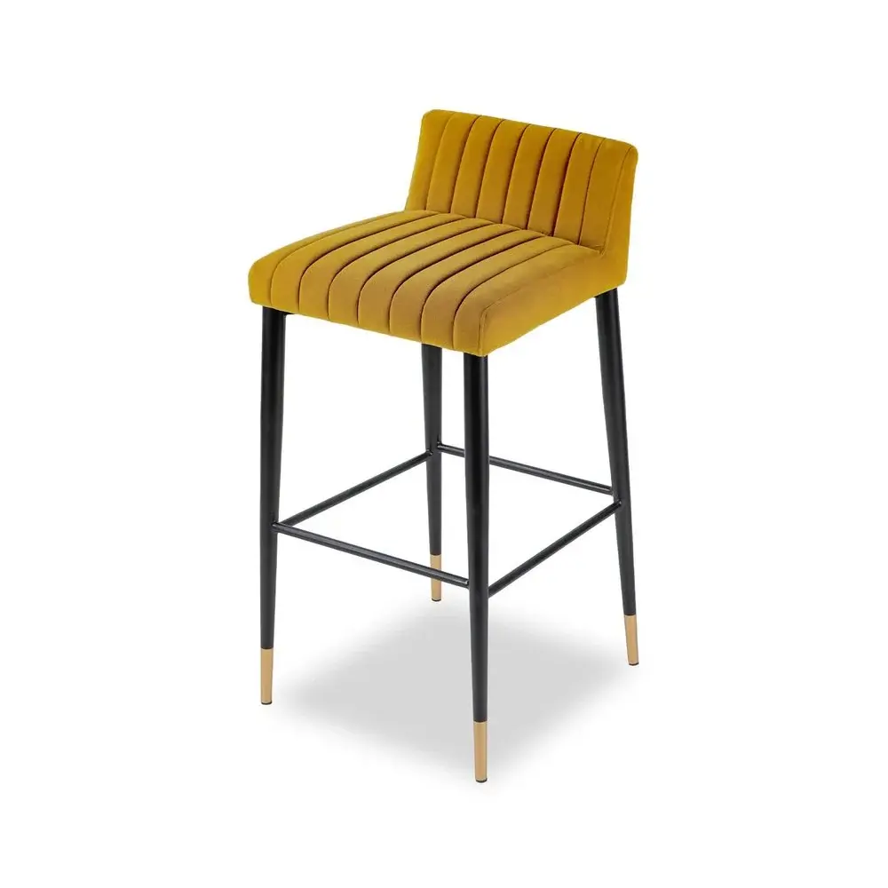 Toscana Camel Velvet, Matt Black Reinforced Legs with Gold Feet Bring elegance to your entertaining space with the Coltrane Stool. Offering truly distinctive style guaranteed to stand out from the crowd. The contemporary channelled upholstery of the Coltrane Bar Stool with its softly supportive seat and the sleek lines are simply second-to-none. The Coltrane features Toscana Camel Elegant fabric with tapered legs capped in gold and with a footrest. 100% Polyester