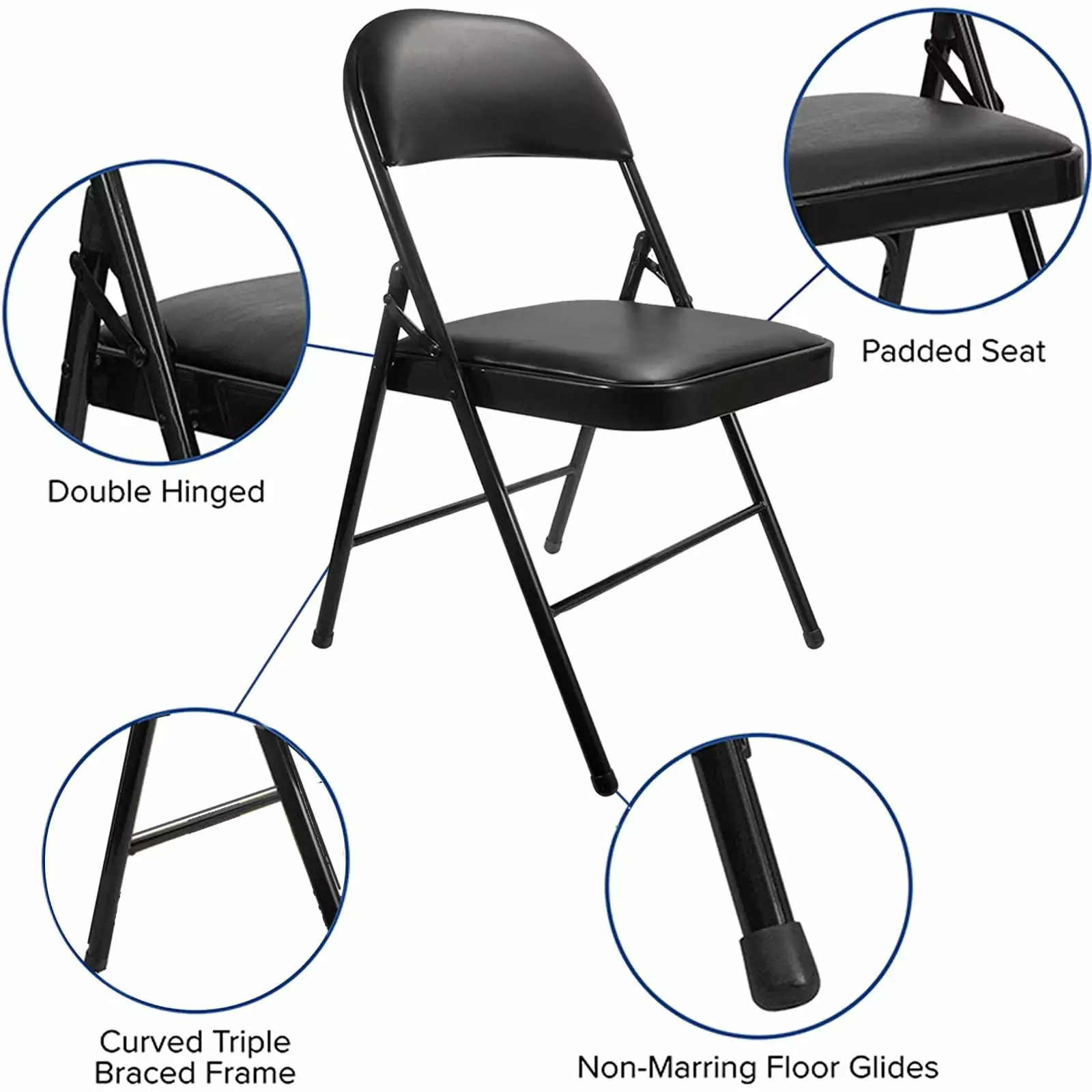 Sturdy metal frame: This sturdy folding chairs have excellent durability and carrying capacity. The folding chair is made of high-quality thick steel. which is stable. durable. rust-proof. and corrosion-resistant.