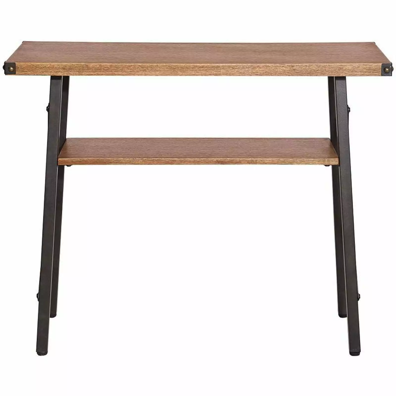 Add a touch of contemporary style and rustic flair to your indoor furnishings with this oak veneer console table. This table features an striking canyon oak wood veneer finish and a solid steel frame build ensuring lasting quality.