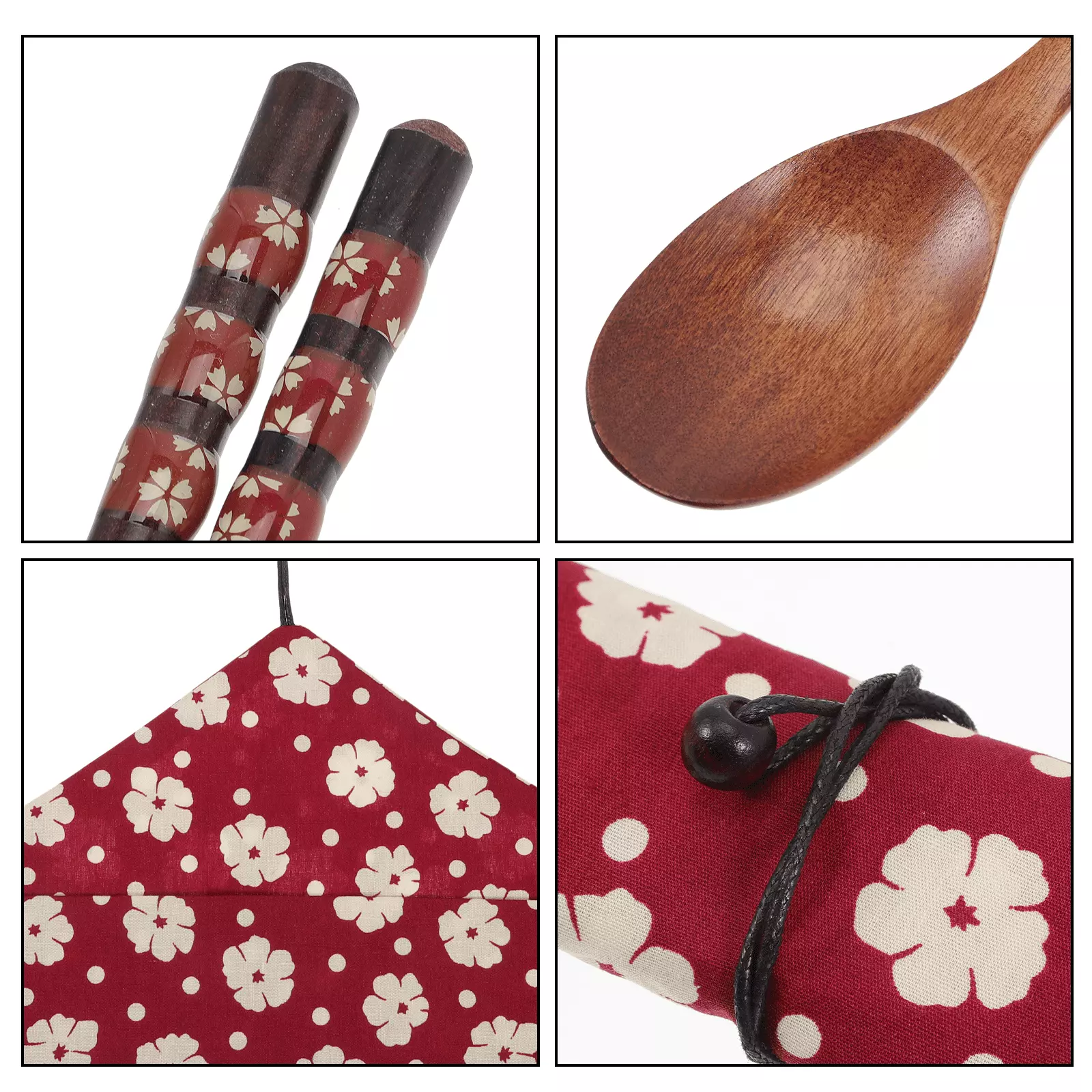 -The Travel Tableware Set can meet your different needs. Made of wood material. durable for use.