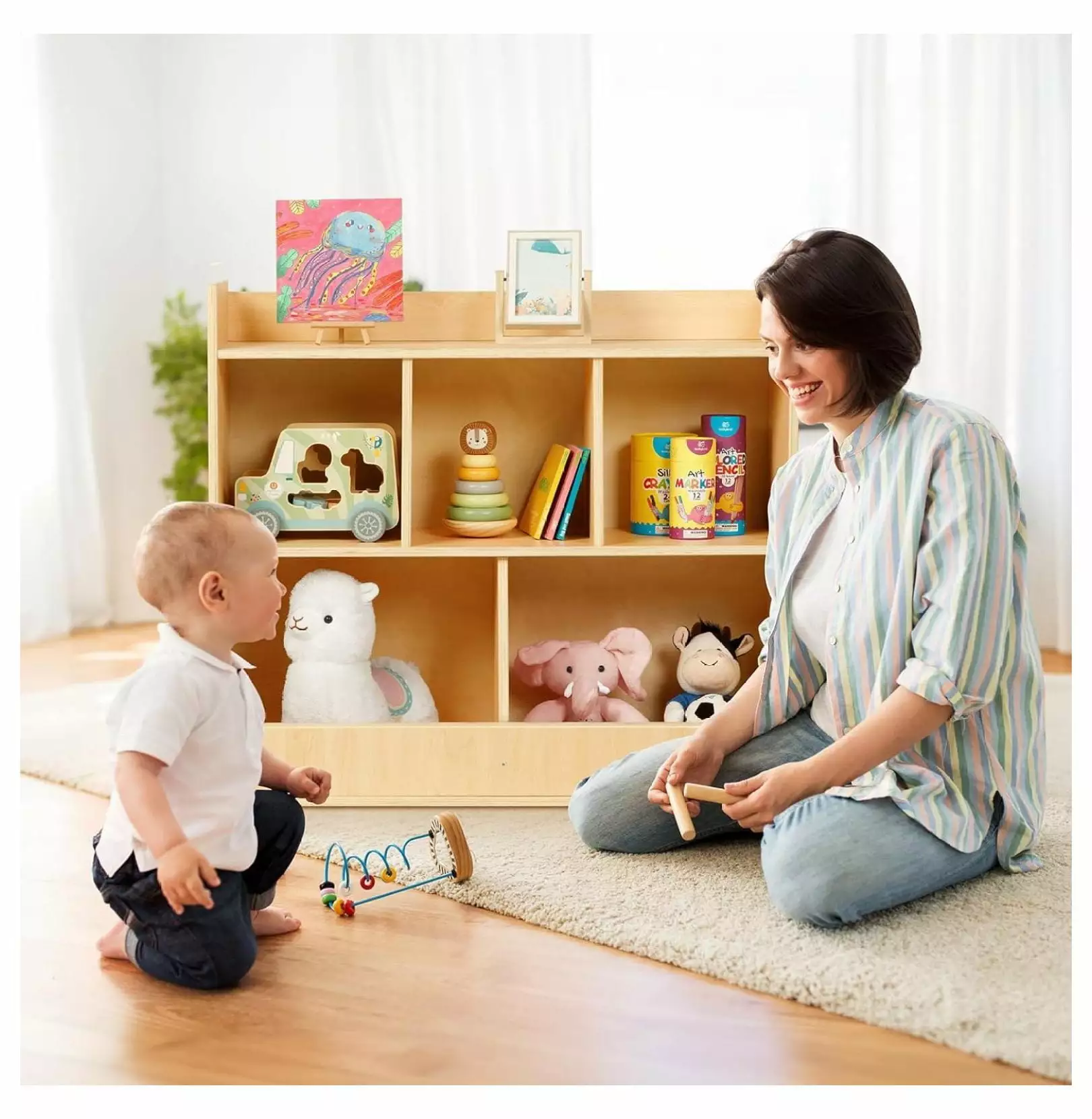 - MONTESSORI SHELF: let children learn to organize their own toys and books. In certain programming. children’s hands-on ability can be improved. and their ability to plan and manage their own items can also be strengthened. At The Same time. children can become more .