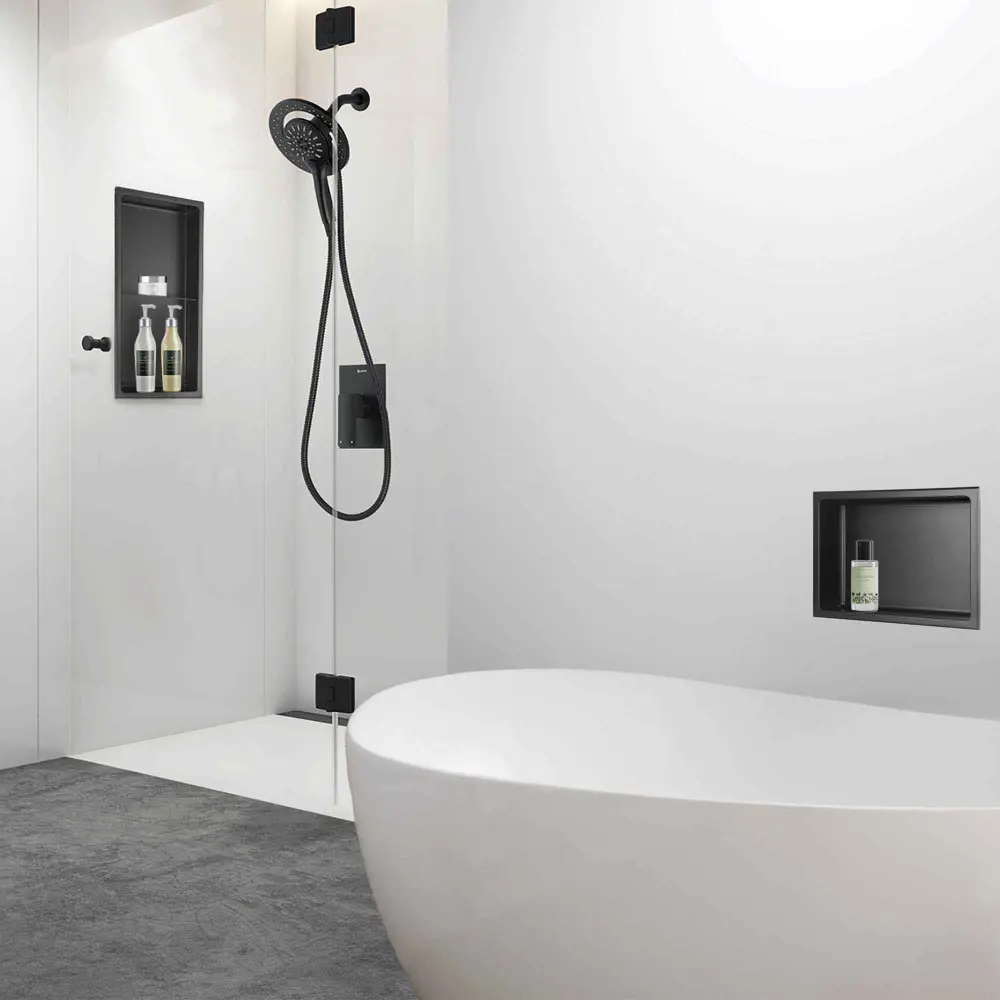 Layla Shower Niche in Matte Black Stainless Steel, 12″ x ✓ Adjustable width fits all tubs ✓ Fits standard 30-inch tubs ► Create a Spa-Like Sanctuary