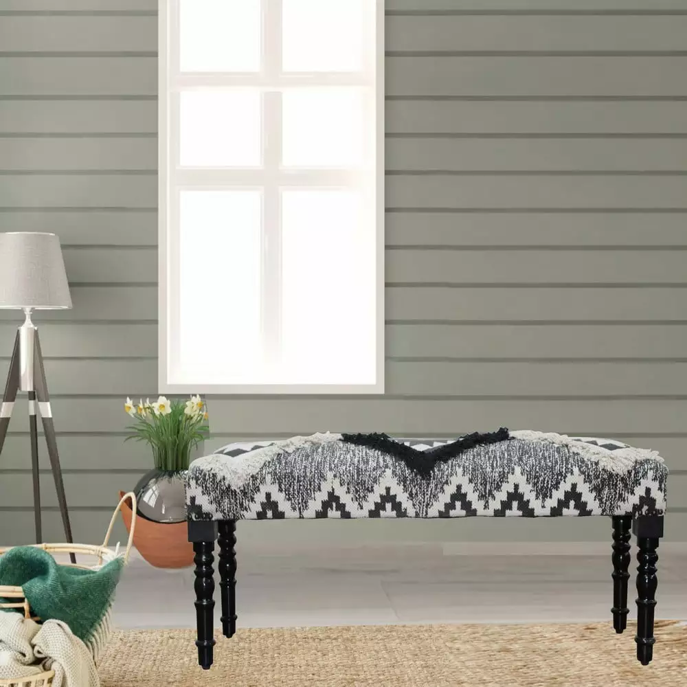 LR Home Geometric Tufted Cotton Indoor Bench. Black / White : This detailed. over-tufted piece is the perfect combination of style and comfort. This piece can be easily added to a foyer. living area. or waiting room in an office. You can never have too many seating options in your home. This product features modern Southwestern patterns. stylish legs. and quality workmanship to add well-deserved charm and style to your home.