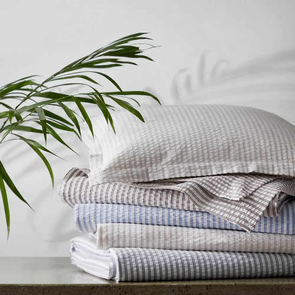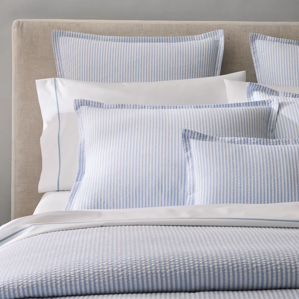 The Matteo Cotton Duvet Cover brings sophisticated style to your bedroom with its elegant menswear-inspired design. Made from 100% cotton and OEKO-TEX Standard 100 certified, this duvet features a sharp seersucker weave with a two-toned stripe for a distinguished, textured look. The duvet is finished with a 1-inch flange, adding a tailored and polished touch to your bedding.