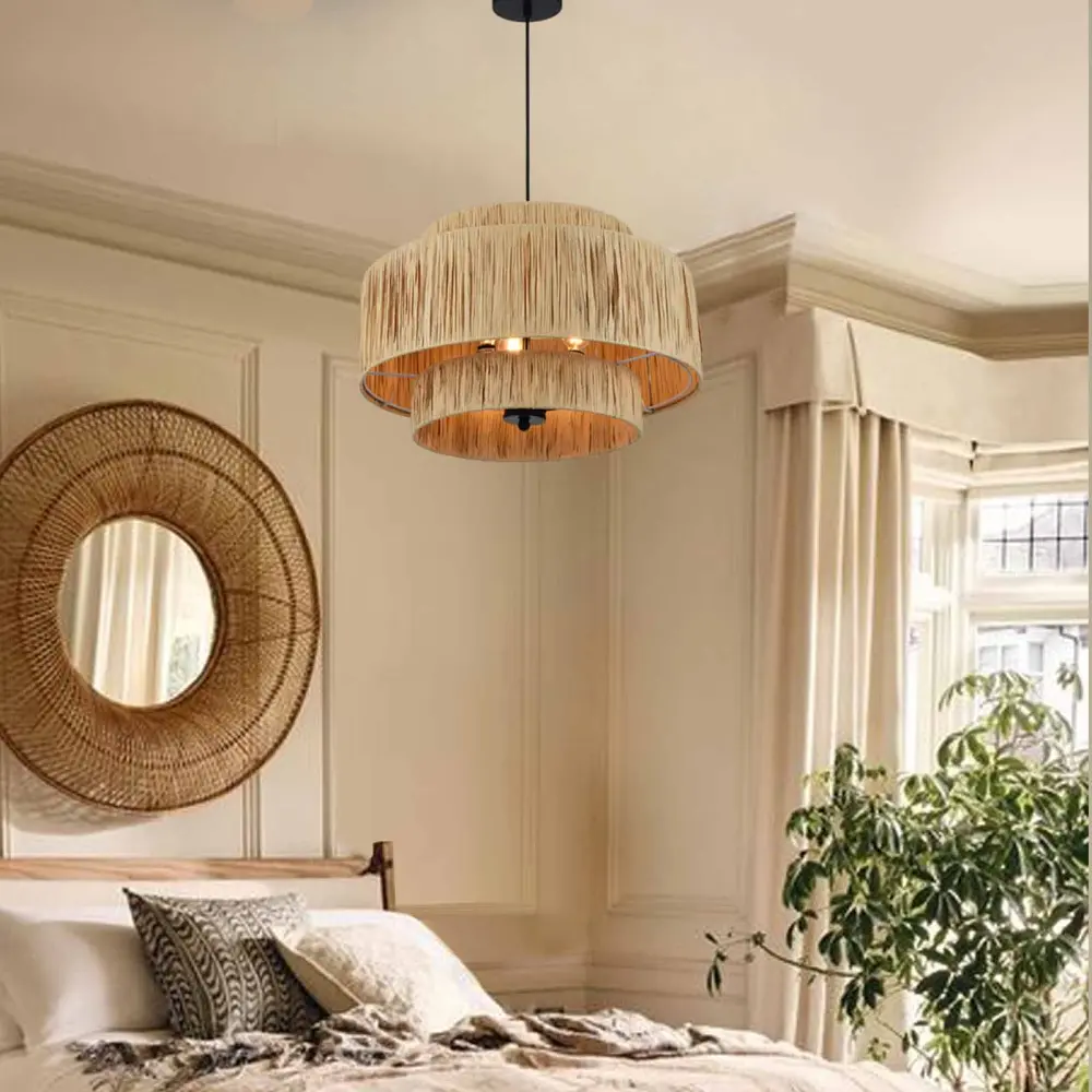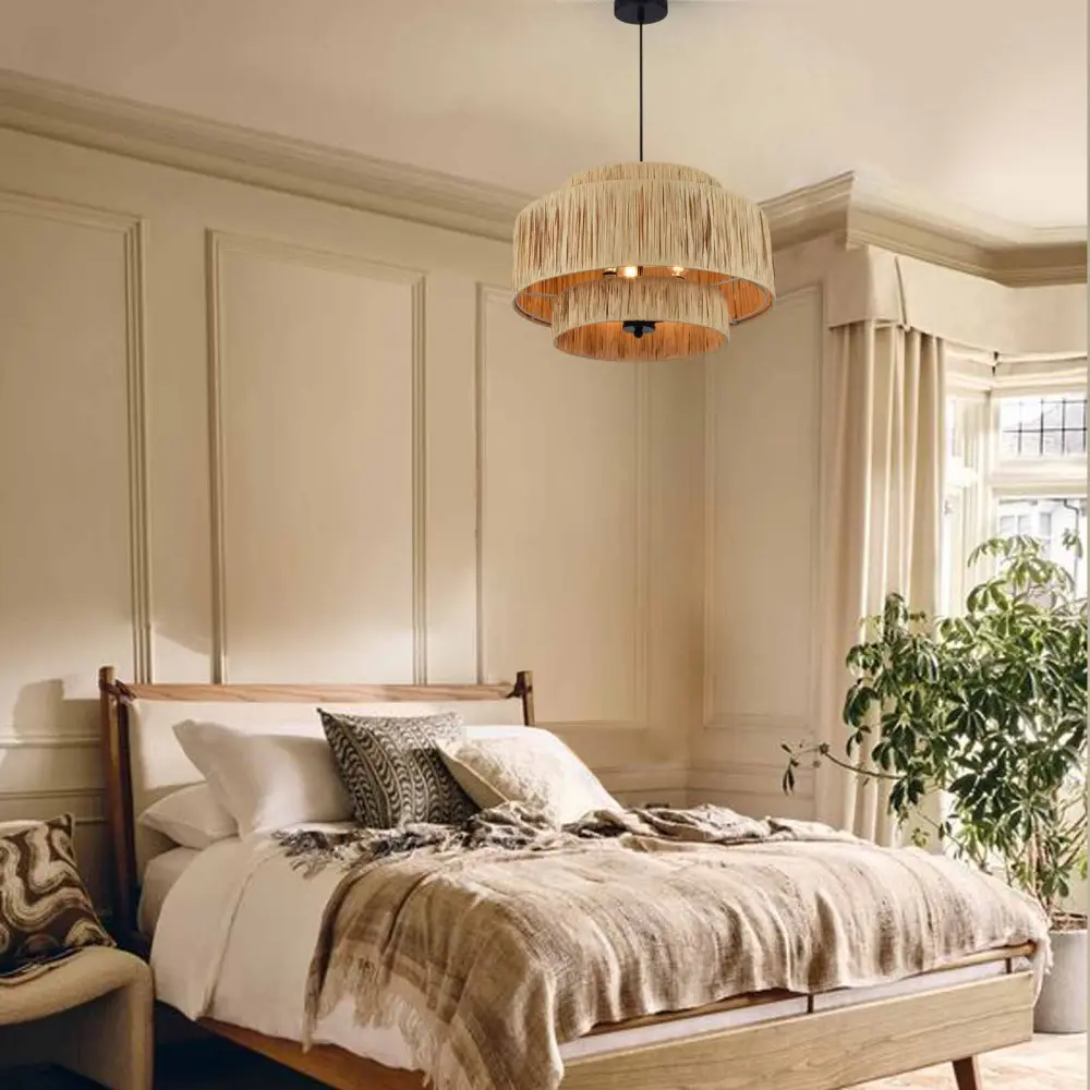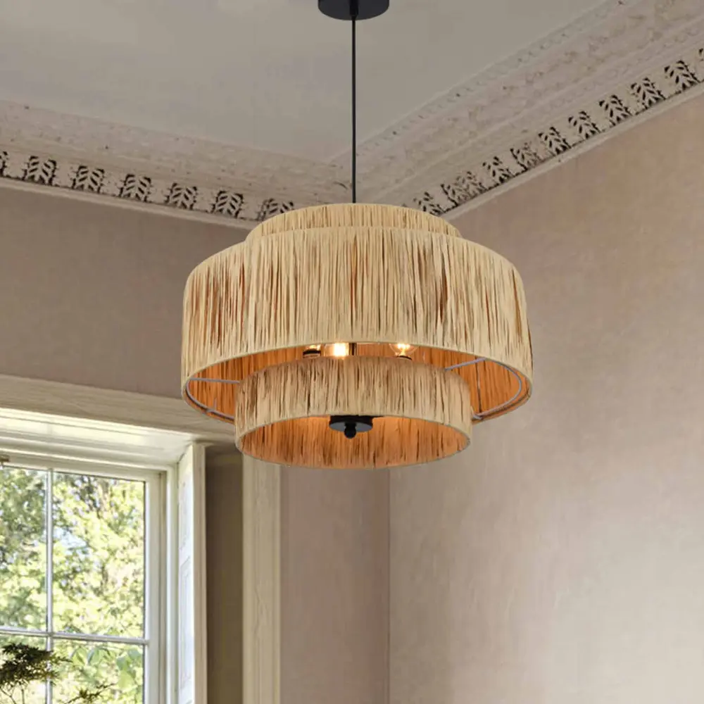 Maxax 3 – Light Dimmable Drum Chandelier Natural Paper Rope
