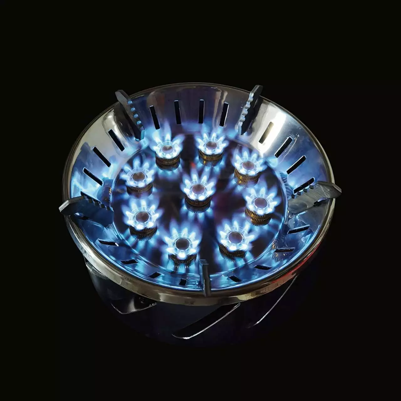 The camping is foldable design. high hardness. heat resistant. 9 fine copper fire hole. adjustable fire. gather and save energy. It is very suitable for outdoor activities.
