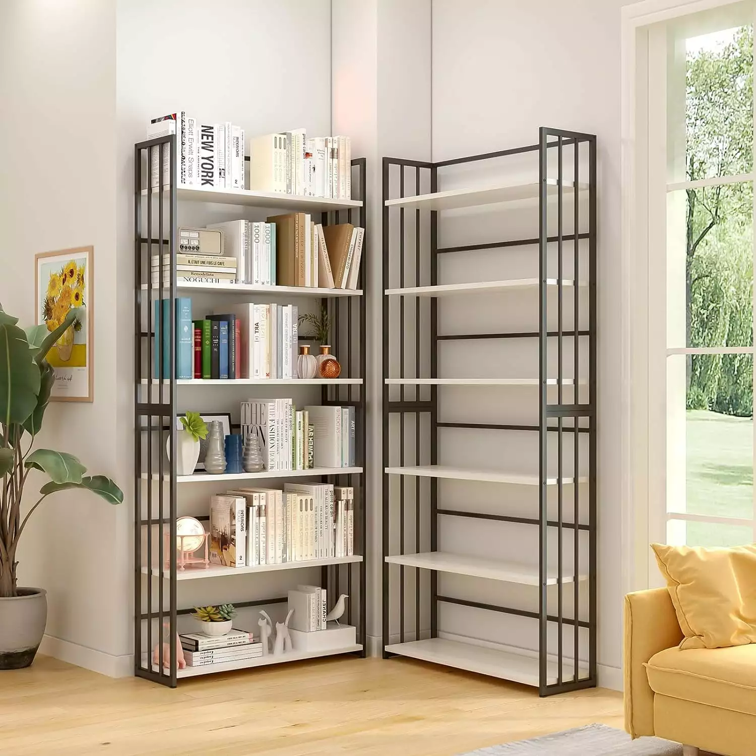 - HEAVY-DUTY – Made of thick particleboard and heavy-duty powder-coated metal frame. this tall library bookcase has a super large load capacity. Each shelf can hold 100lbs. The shelves will never sag because of too many books;