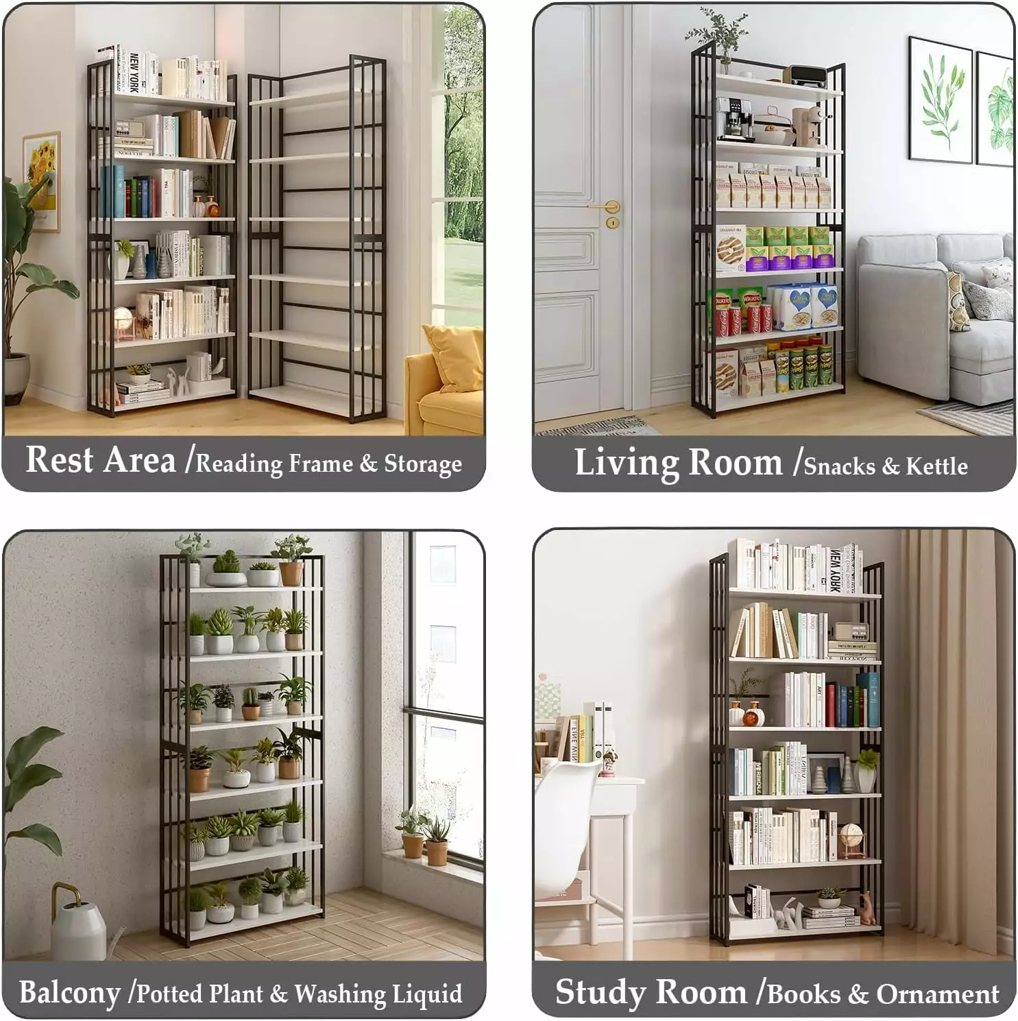 The six open shelves provide ample storage space for books. plants. and other household items. while the three-sided fence design keeps your items secure and prevents them from falling.