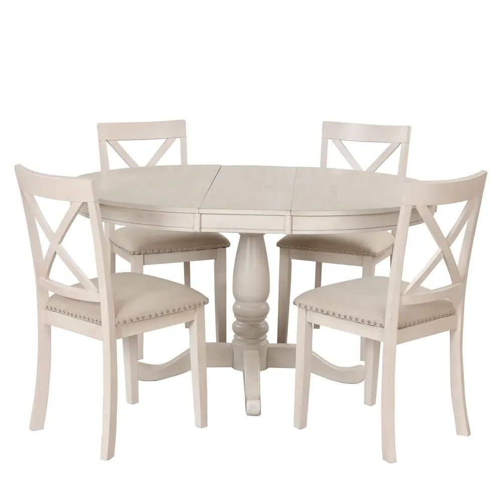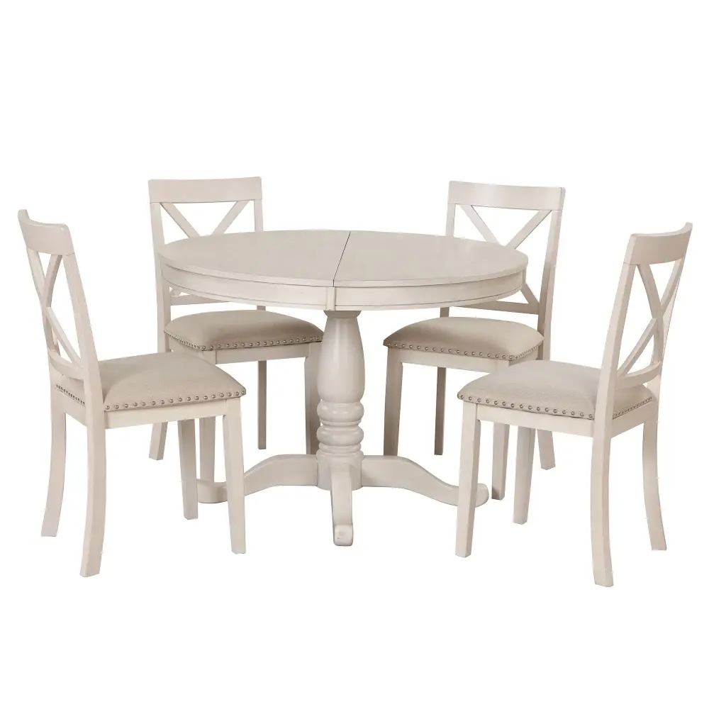 - Comfortable Seating: Includes 4 unpatterned wood chairs with curved backs and thick seat pads, each supporting up to 250 pounds, ensuring a comfortable seating experience.