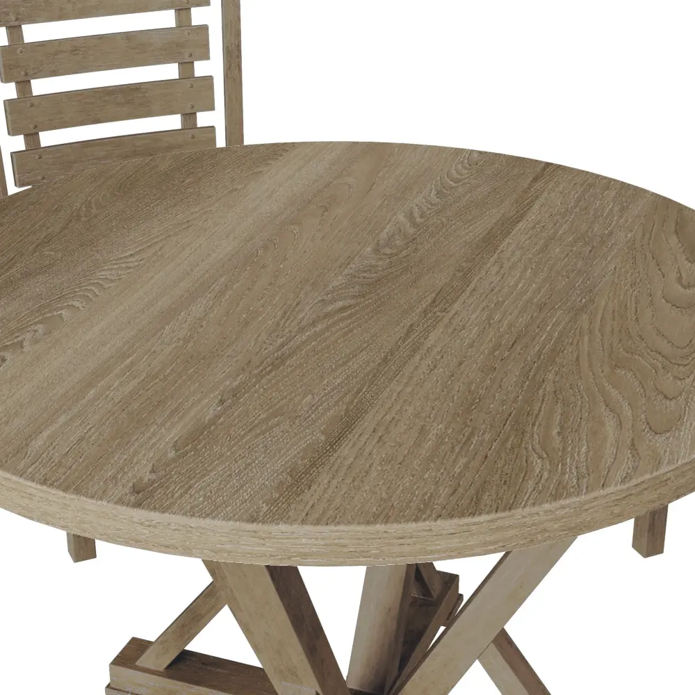 Modern Farmhouse Round Dining Table Basic Wood Rubberwood Antique Finishing Rustic Look Distressed Look Wire Brushed For 4 Seaters – Grayish Brown