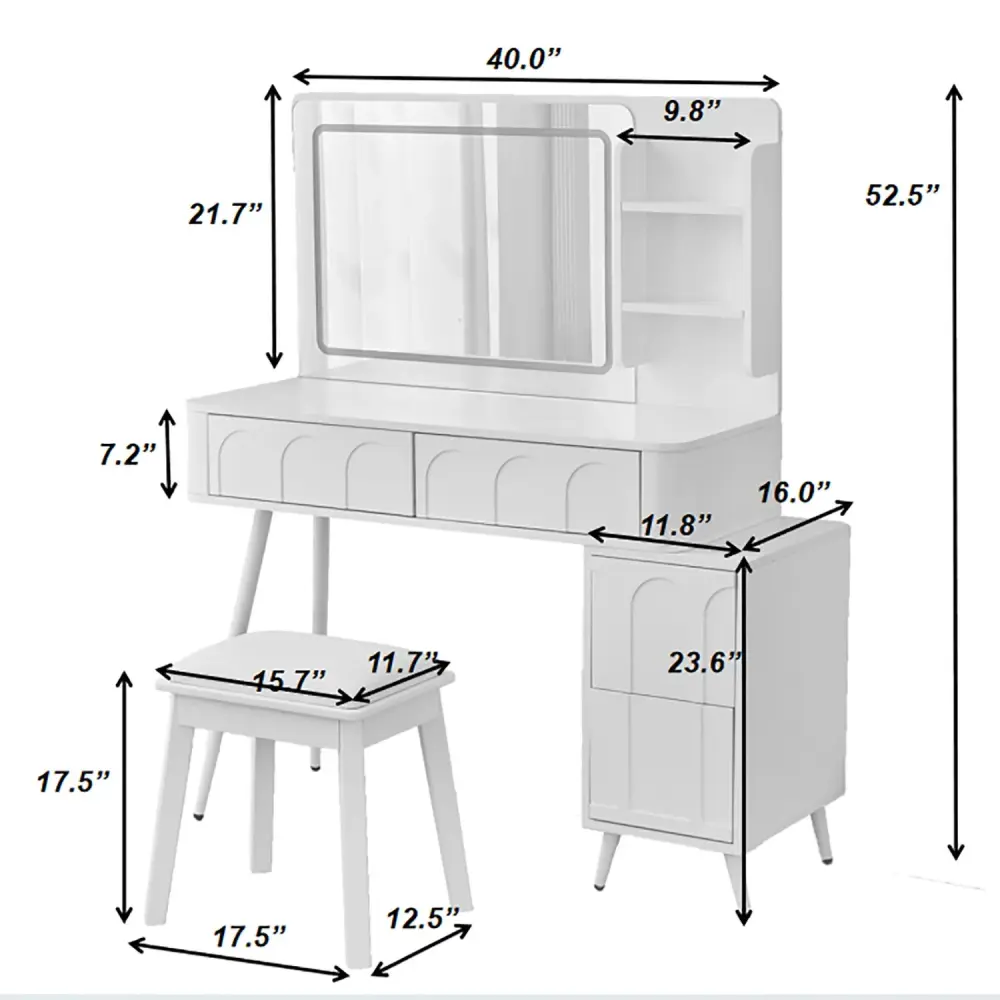 Modern Makeup Vanity Desk With LED Lights & Mirror 4 Drawer Dressing Table Place Space Saving For Bedroom – White