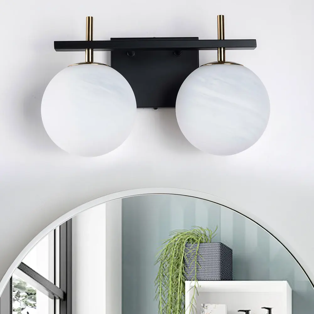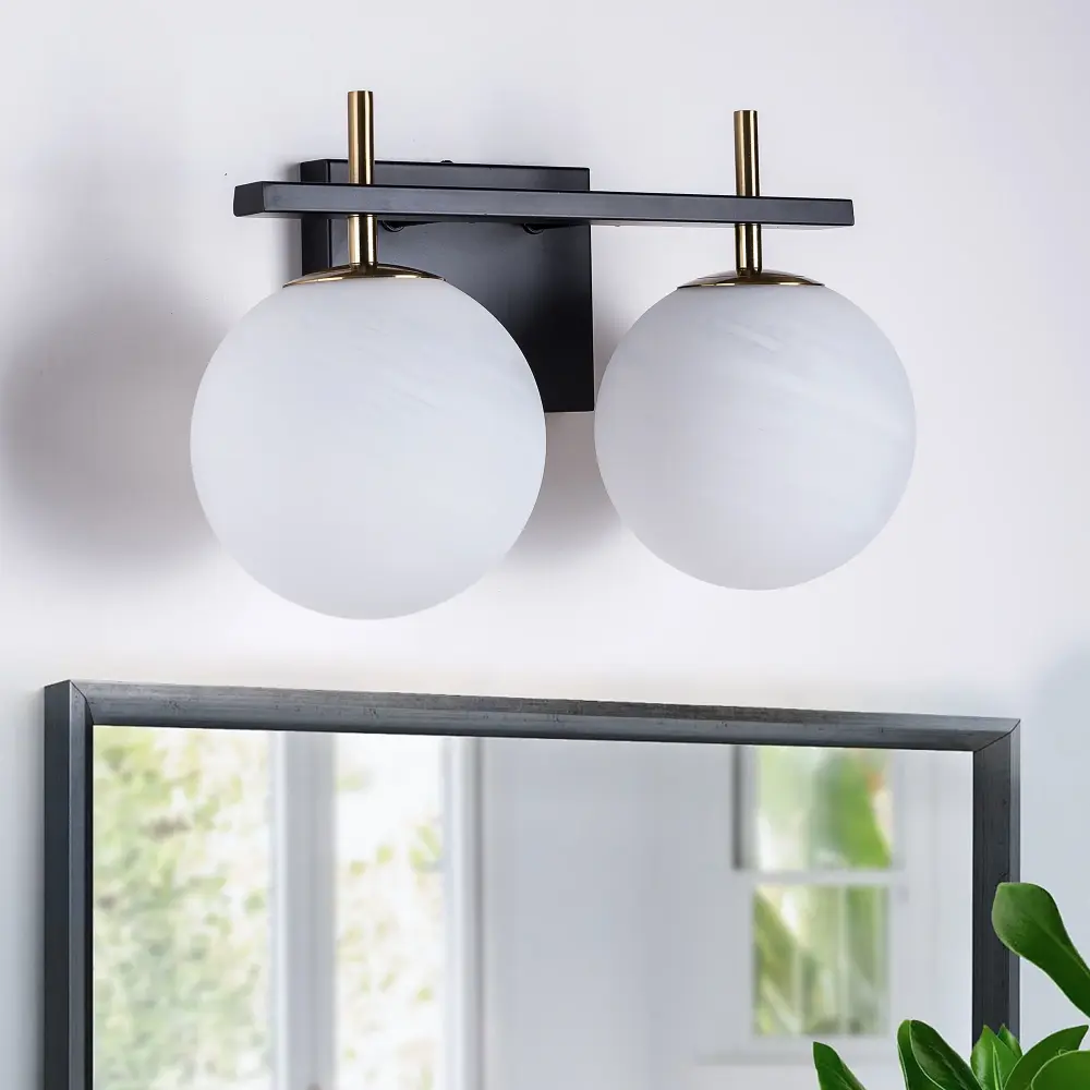 This 3-light bathroom vanity light features chalk cloud frosted glass globe shades paired with high-quality metal accents, offering a trim, modern silhouette that enhances the airy feel of any space. Unlike traditional frosted glass, the unique cloud-frosted finish provides a brighter, softer light, perfect for upgrading your bathroom or bedroom. The versatile design allows installation with the shades facing up or down, based on your preference. Each opaque globe is equipped with a metallic cap and diffuses light from 40W bulbs (not included) evenly throughout your bathroom or powder room. Damp-rated for safe use in high-moisture environments, this vanity light combines style, functionality, and durability.