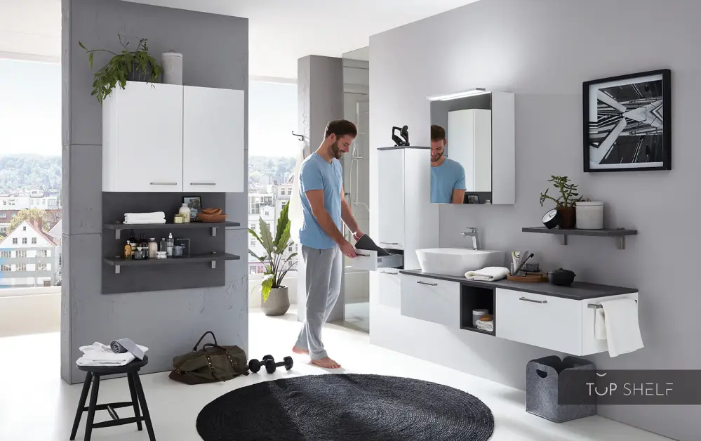 nobilia elements bathroom furniture set 180 cm Nordsee Bad in white configurable with wall shelf – available straight away and quickly
