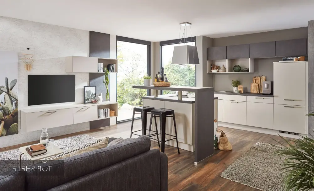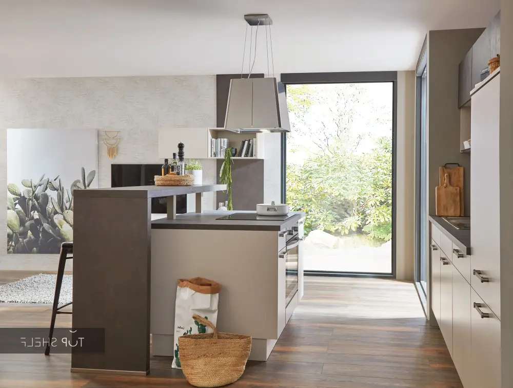 nobilia kitchen unit with kitchen island & Living Laser 415