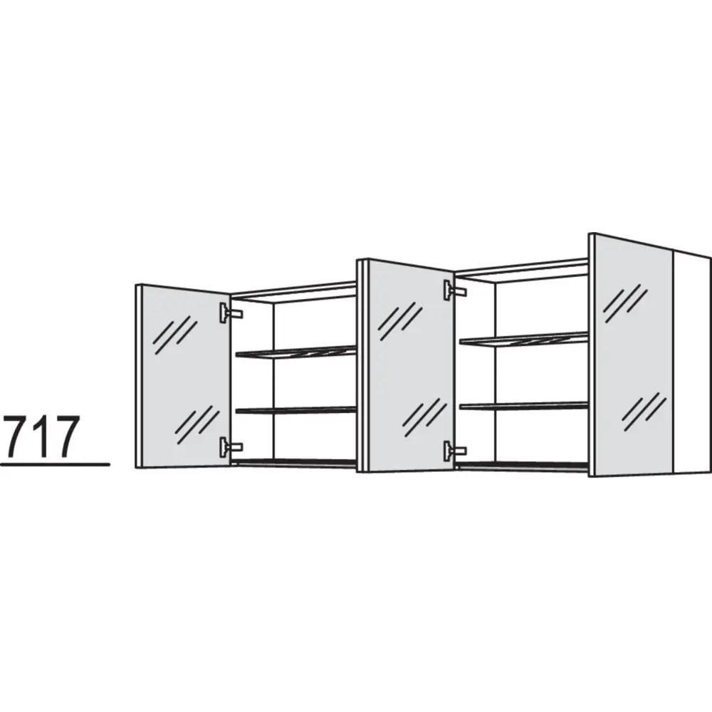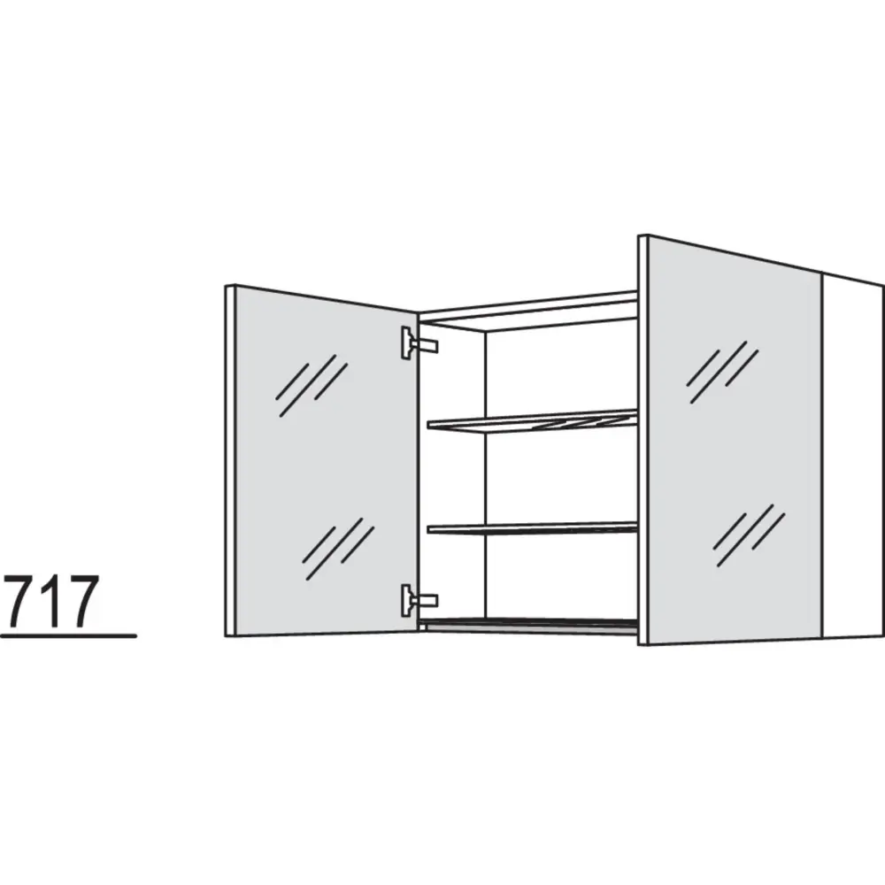 nobilia mirror cabinet with 2 mirror doors and 2 glass shelves