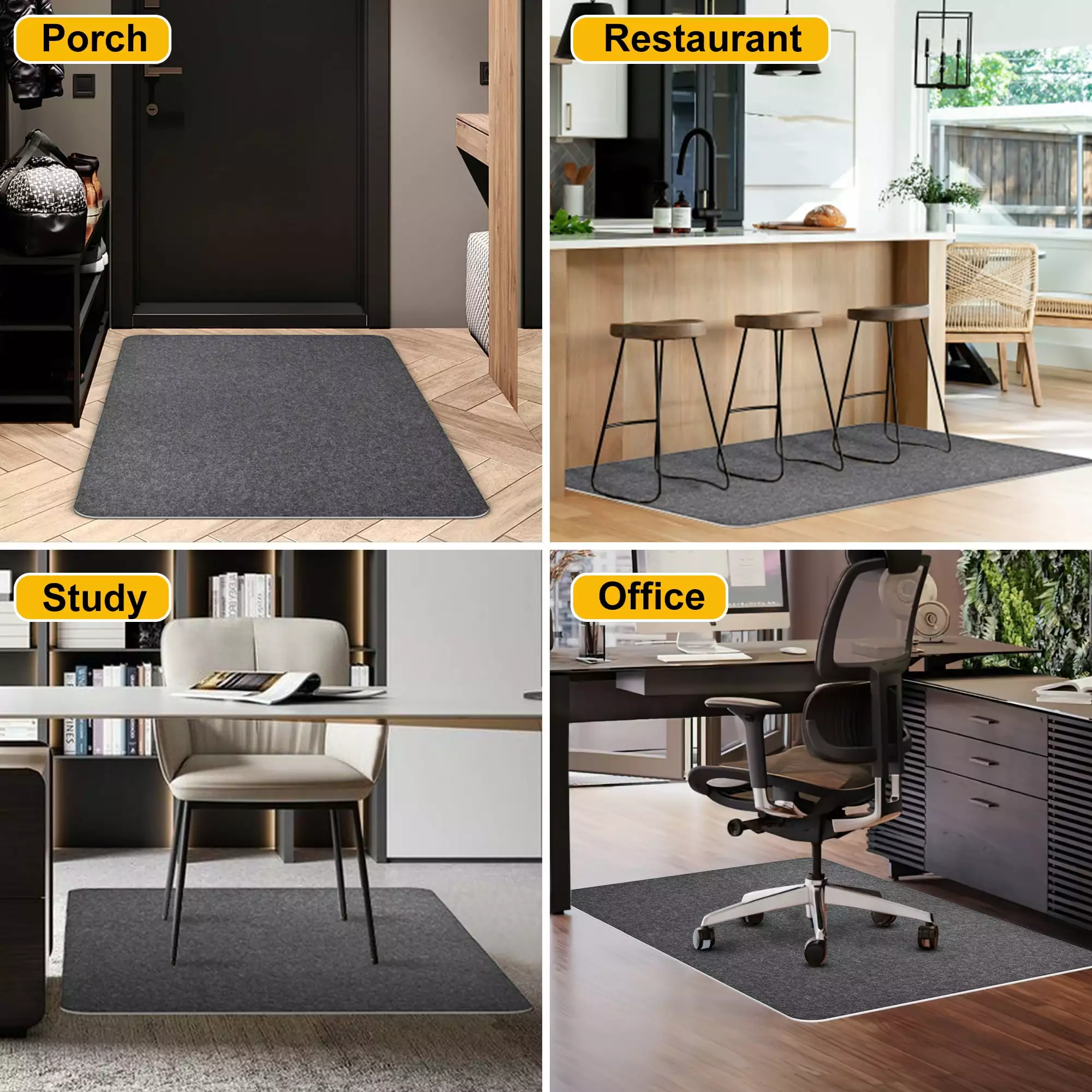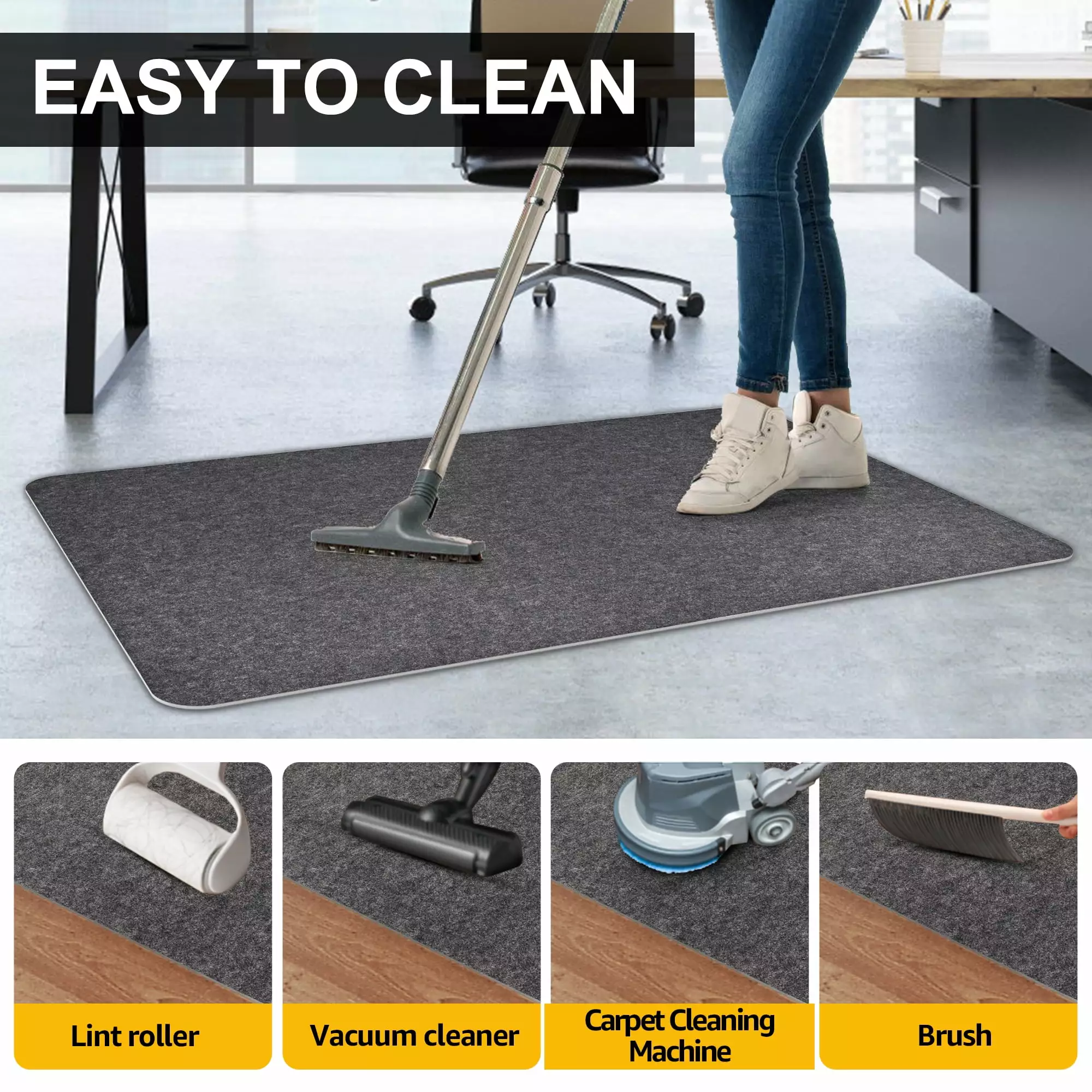 Made of polyester fibers. this chair mat protects floors. chairs and other furniture. Easy cleaning is one of the main advantages of this chair mat. which is also effective in reducing noise. Meanwhile. the high quality adhesive on the back of the office chair mat can make it stick firmly to the floor and not slip easily. which is convenient for those who often walk on the office chair.