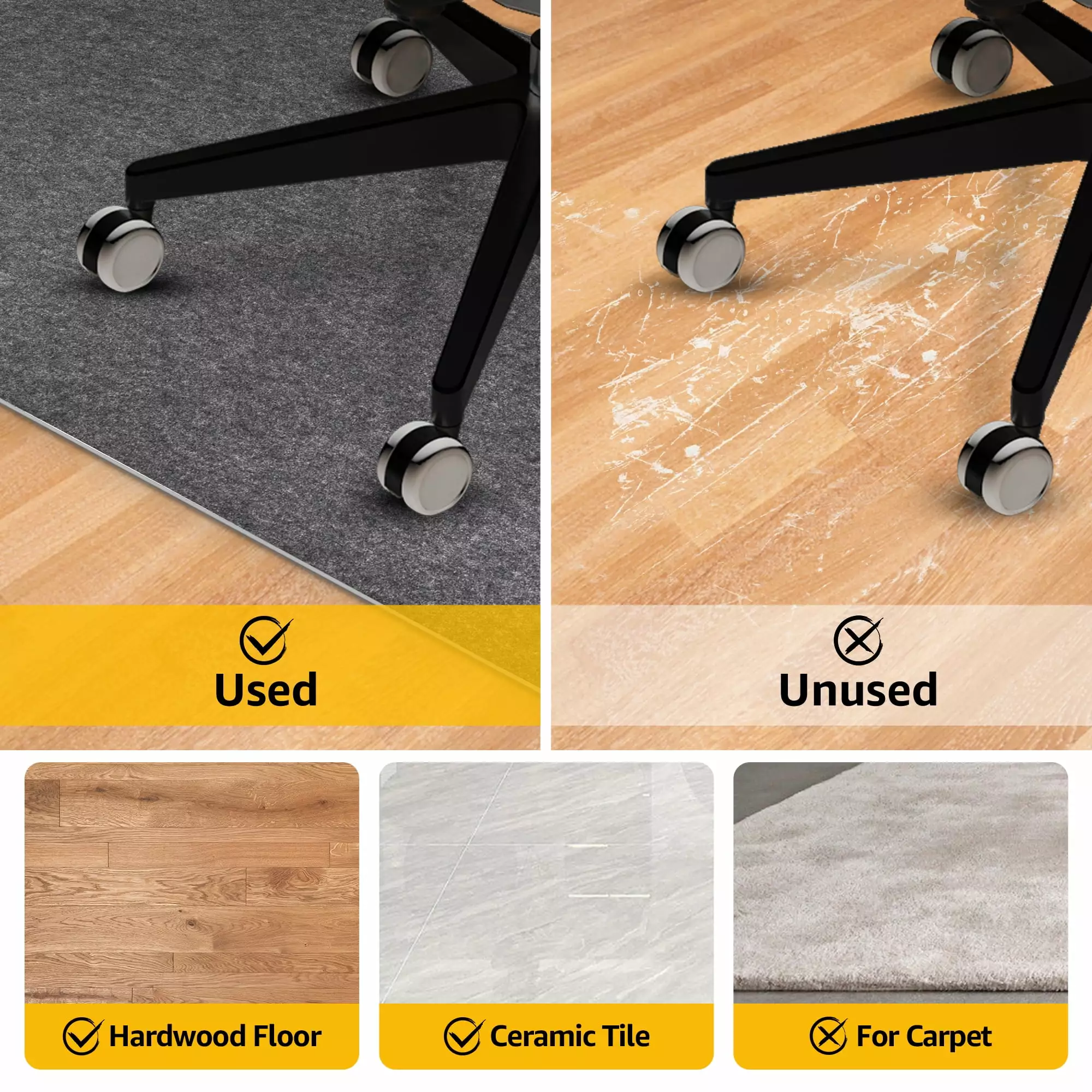 - Protect Floor – Computer Chair Mats protect hardwood floors from wear and damage from hard chair wheels. preventing costly hardwood or laminate floor repairs.