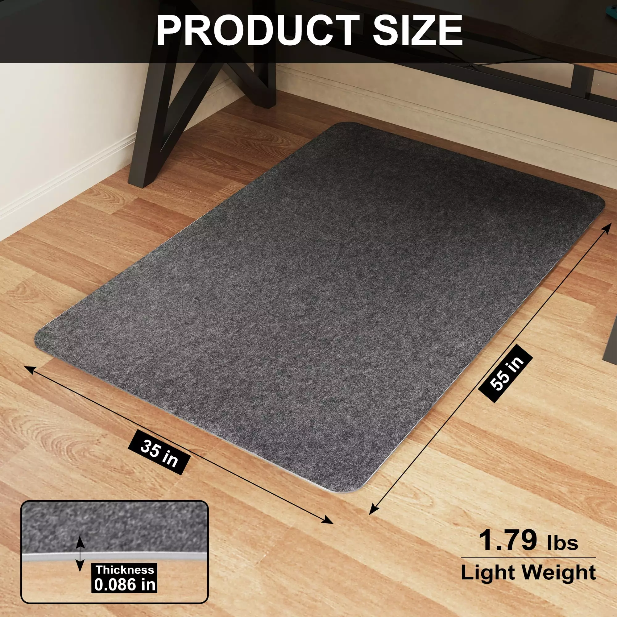 - Eco-Friendly Material – 35 x 55 Chair Mat is made of polyester. polyester fiber and PE adhesive film. This chair mat is odorless and non-toxic. so it poses no health risk to the indoor environment.