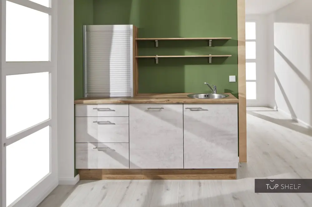 Pino kitchen with roller shutter top cabinet 180 cm concrete white-gray immediately available complete without electrical appliances and super easy assembly