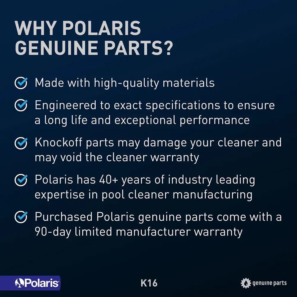 - WARRANTY: Using only Polaris genuine parts helps maintain the Polaris cleaner’s manufacturer limited warranty. Purchased Polaris genuine parts come with a 90-day limited manufacturer warranty from date of retail purchase.