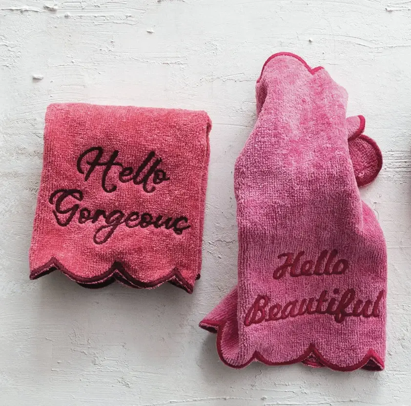 Add a splash of personality to the bathroom with these charming 10-inch square Cotton Bath Towels. The vibrant pink hue and the embroidered sayings make them a delightful addition to any eclectic, farmhouse, or transitional style space. Crafted from pure cotton, they promise both softness and high absorbency. Whether hung on a rack or folded on a shelf, these towels offer a blend of whimsy and practicality, ensuring that every bath feels like a luxurious escape. The generous size of these towels furnishes ample coverage, perfect for wrapping anyone in after a relaxing bath or shower. Treat anyone to a touch of fun and functionality with these delightful Cotton Bath Towels.