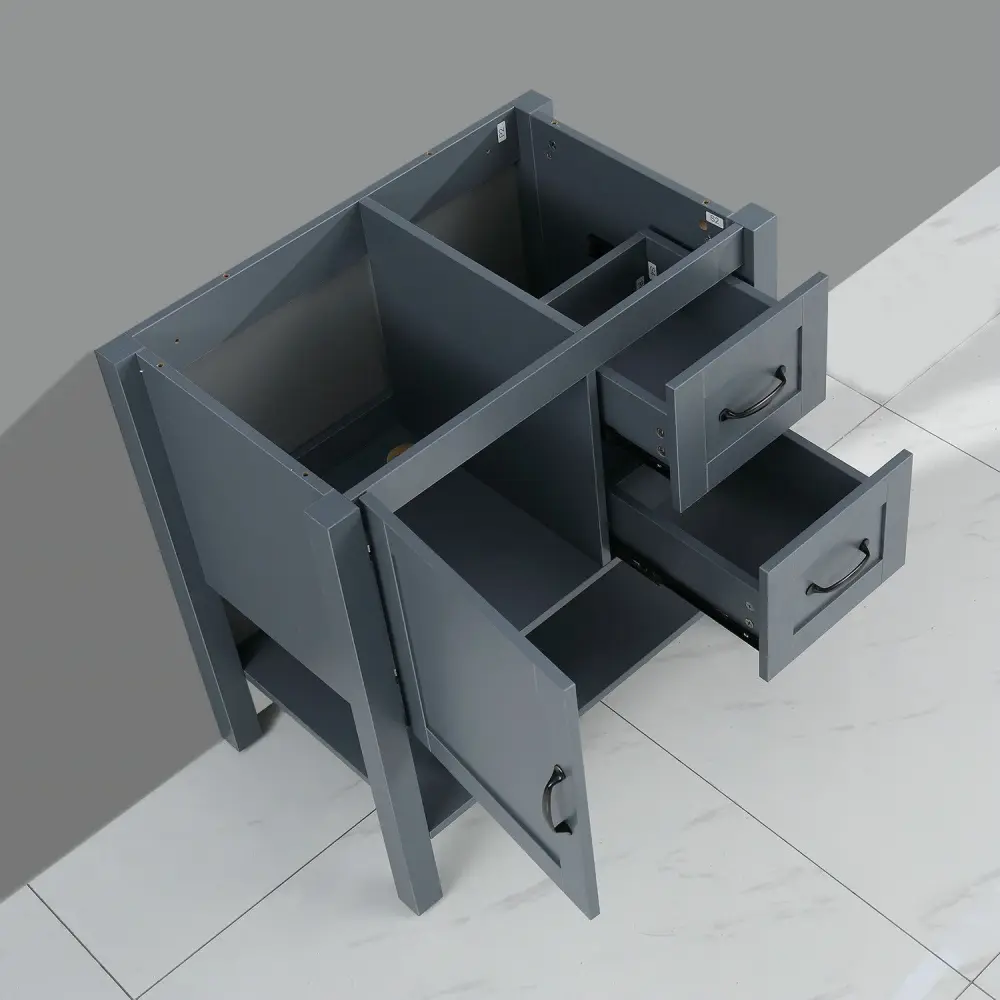 - High-Quality Hardware: Equipped with chic bronze handles, adding rich color to the vanity set, and soft-closing buffer stainless steel hinges checked for long-term use.
