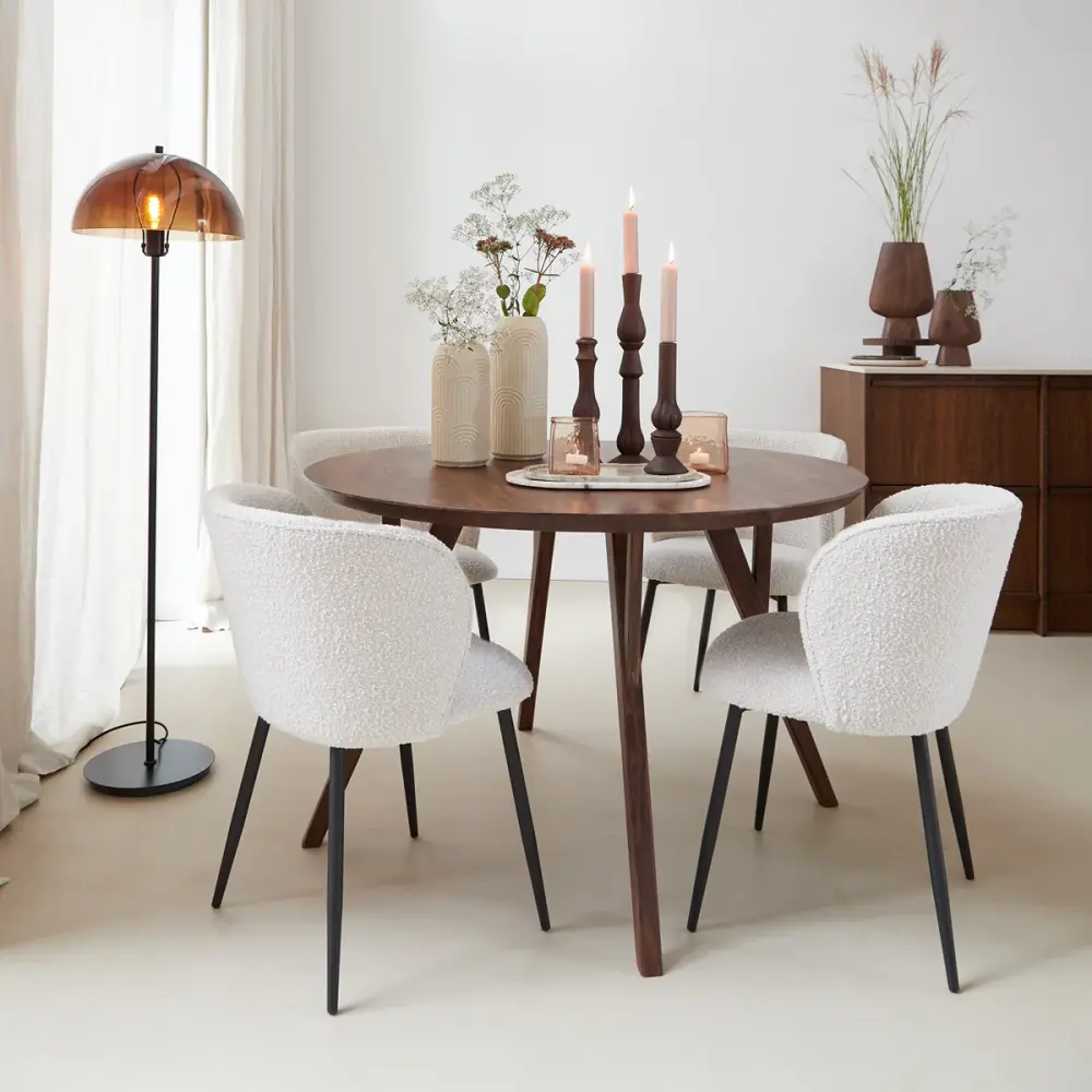 The Quenza Dining Table in Acacia Wood Chestnut brings together strength and warmth in an elegantly simple form. Rich grain detail and a warm brown finish give it lasting charm, making it ideal for both relaxed meals and sophisticated gatherings. A dependable choice for homes that favour natural materials and timeless silhouettes.