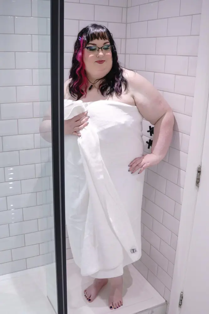 This GINORMOUS fluffy towel has been specifically designed to actually fit EVERY BODY, and we really mean it! Coming in at 220cm (86.5 inches) maxi and 100cm (39 inches) wide, this towel will wrap all the way around you with buckets of room to spare, and is the softest, fluffiest, snuggliest towel you will ever put on your body. Super absorbent and perfect for the shower, pool, beach or spa – you’ll never use another towel again.