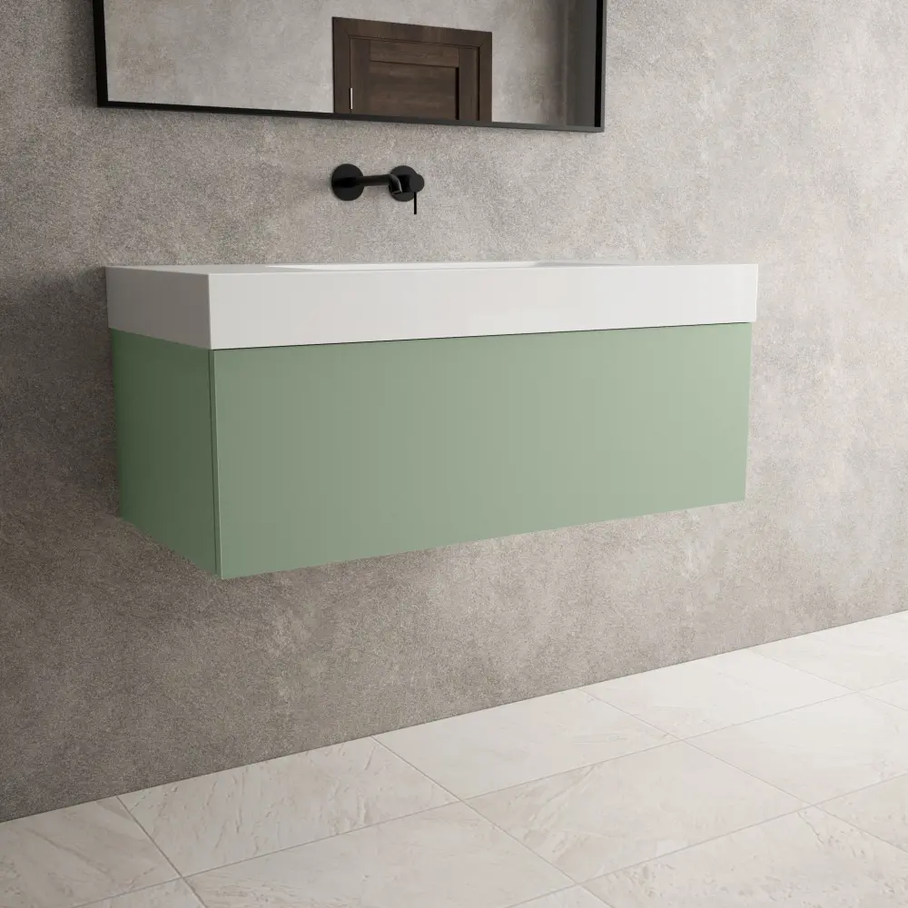 Raffinata One Drawer Vanity Unit With Beyondstone BLOC Basin – Matt Buoyant Green 1000mm