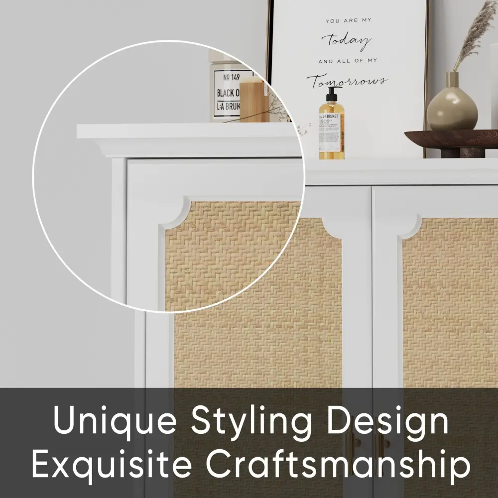 Rattan Decorated Sideboard Buffet Storage Liquor Cabinet – White