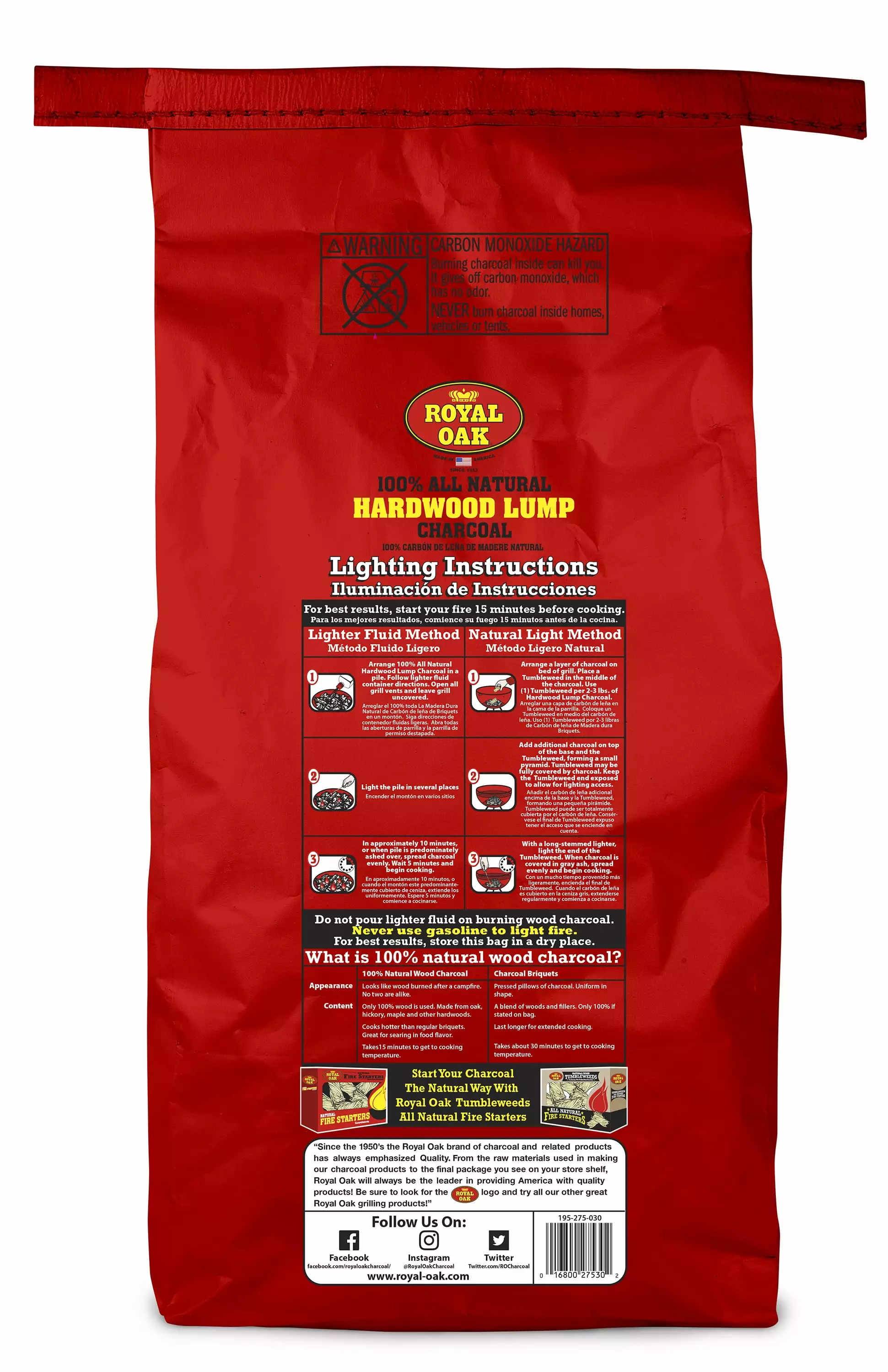 - LIGHTS FAST: Lights quickly and is ready to cook within 15 minutes. Light your charcoal with all natural Royal Oak Tumbleweeds for best results.