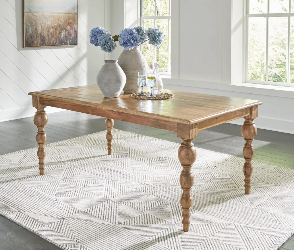 - Exposed feet with faux wood finish
