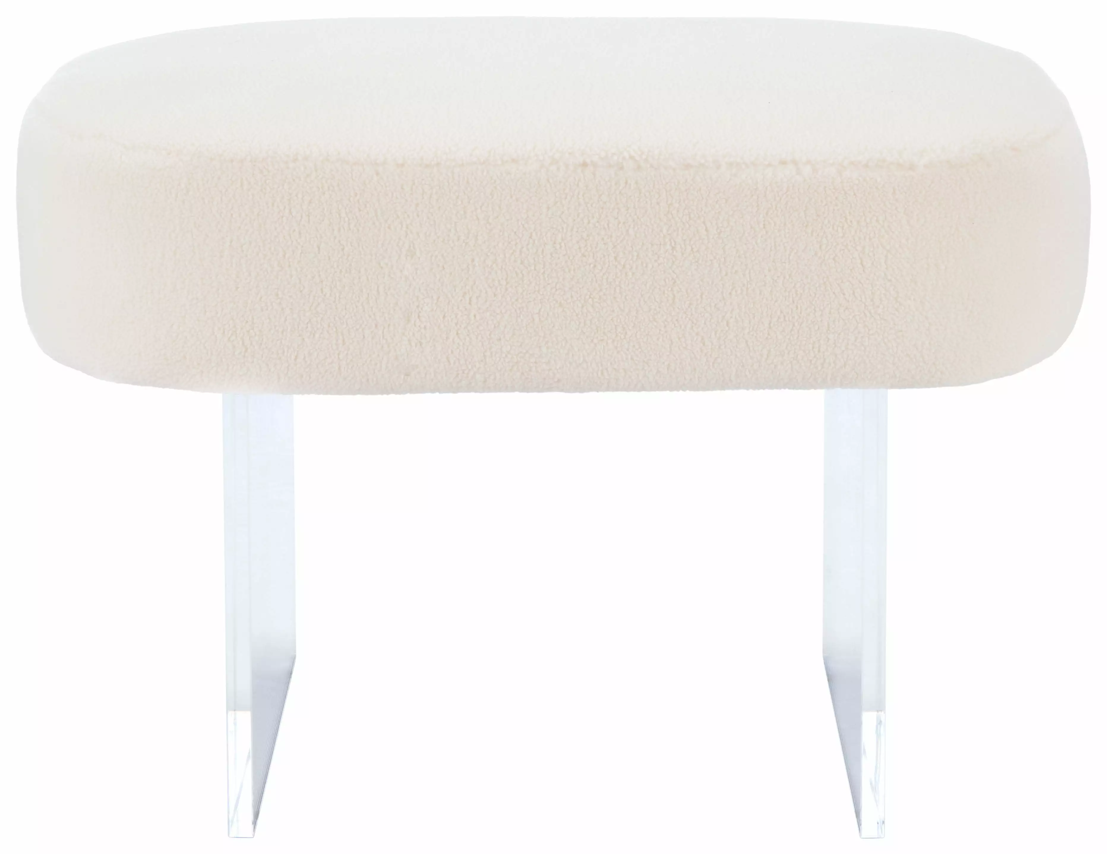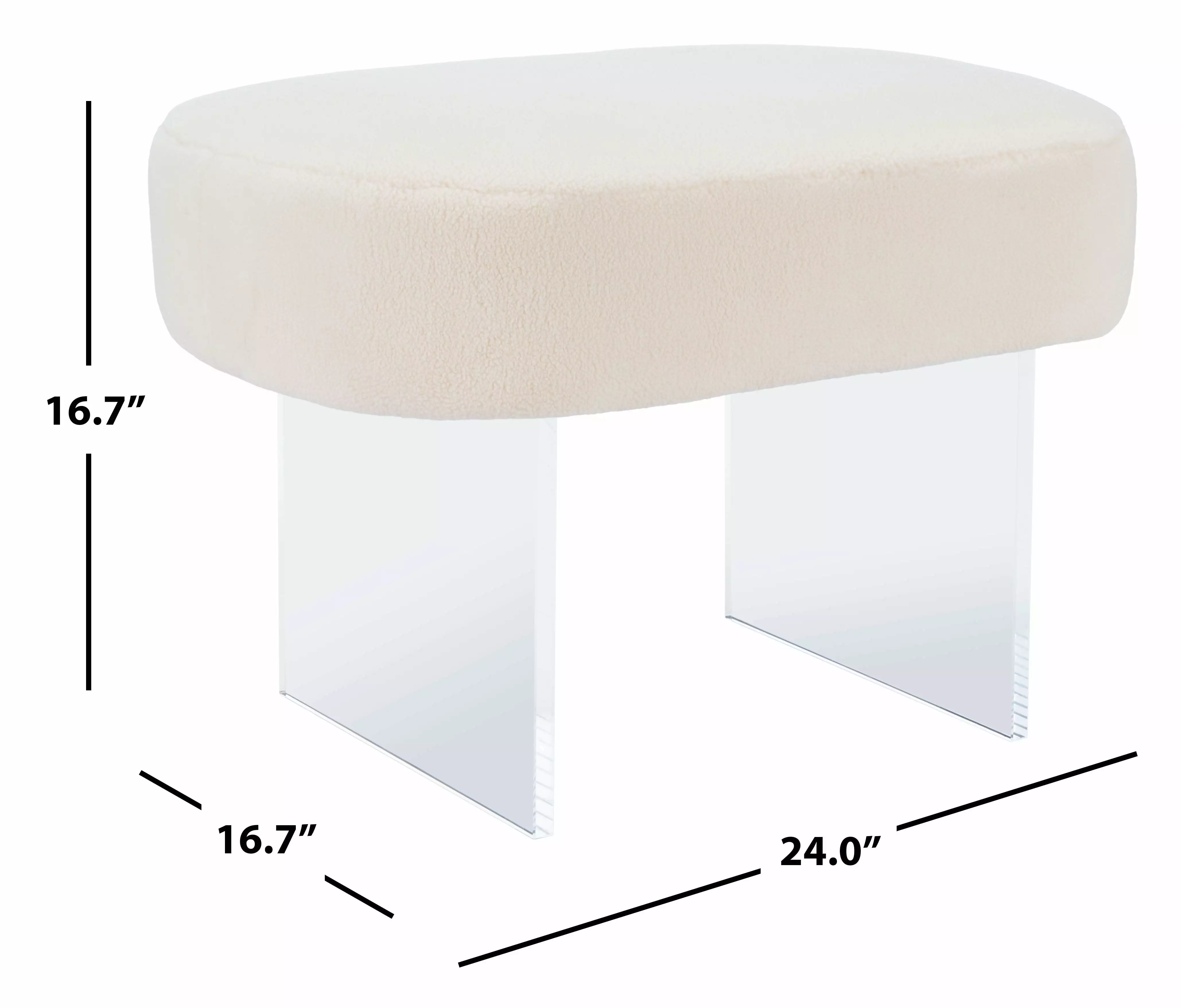 This Warren Ottoman abounds with contemporary sophistication in marvelous minimalist fashion. Appearing to float on crystal-clear acrylic legs. Warren’s faux ivory shearling is plush to the touch. making it perfect as an extra seat or footrest. offering soothing respite at the end of a long day.