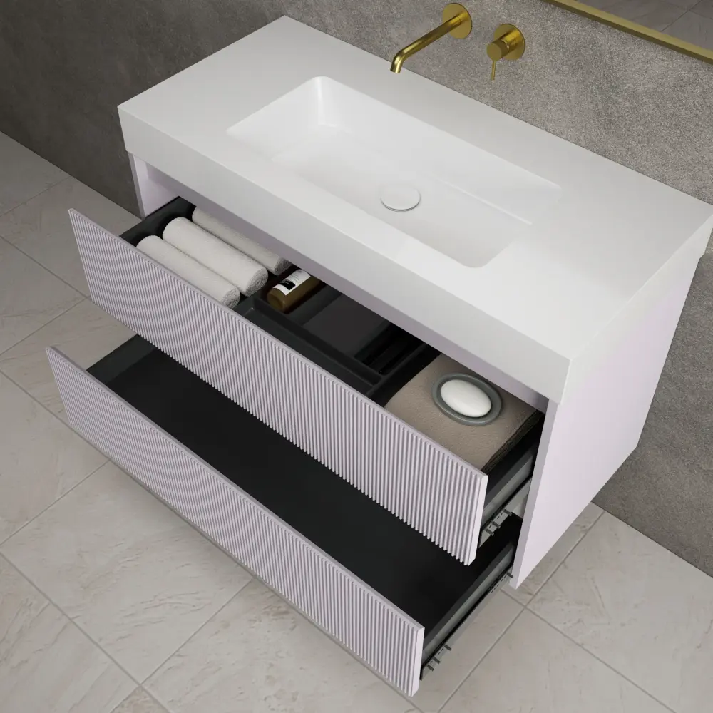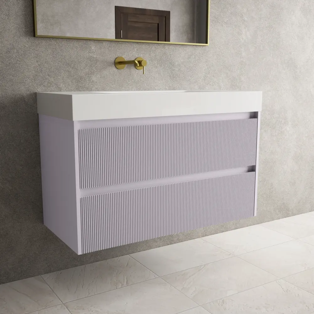 With a choice of solid wood or walnut finishes, the Scanalato unit stands out with its textured reed fluted front and a durable BeyondStoneβ’ basin. This combination ensures longevity and an attractive look that complements any bathroom decor.