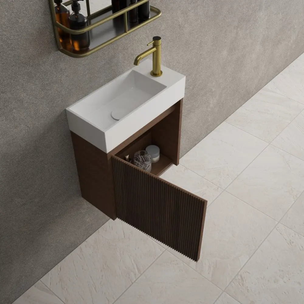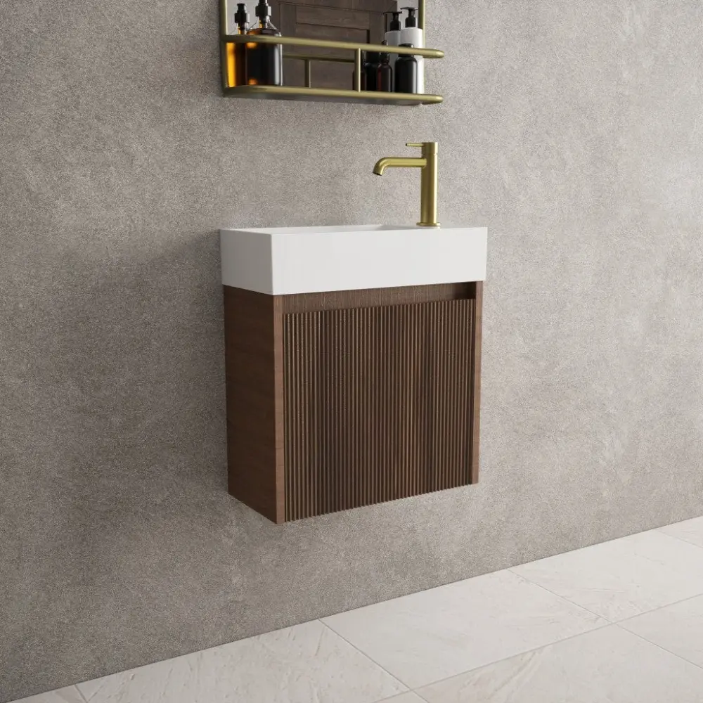 Immerse yourself in the richness of our Scanalato 45x20cm Single Door Vanity Unit, expertly crafted from solid wood for a truly unique, artistic touch to your bathroom. Boasting a vast palette of 21 preferred finishes – alongside the option to personalise with a colour of your choice – this vanity unit enhances your decor while promising unmatched variety.