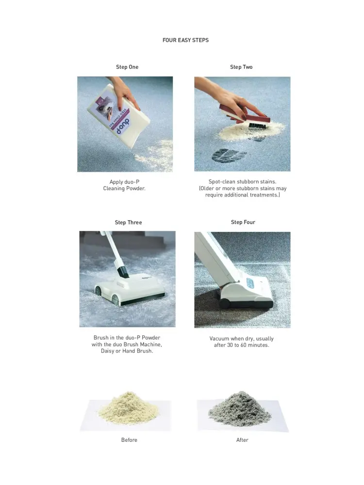 - Duo-P Powder Cleans Carpets and Upholstery and Removes Stubborn Stains