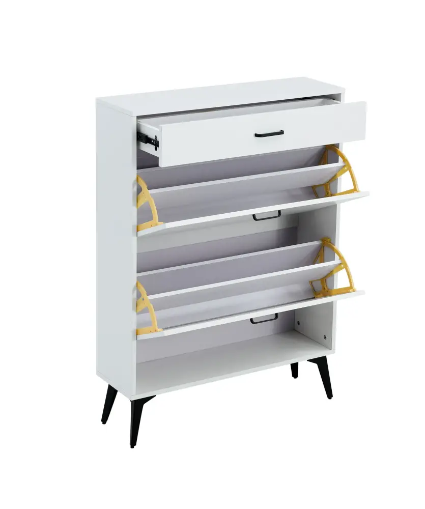 Shoe Cabinet, Shoe Storage Shelves, Metal Leg – White