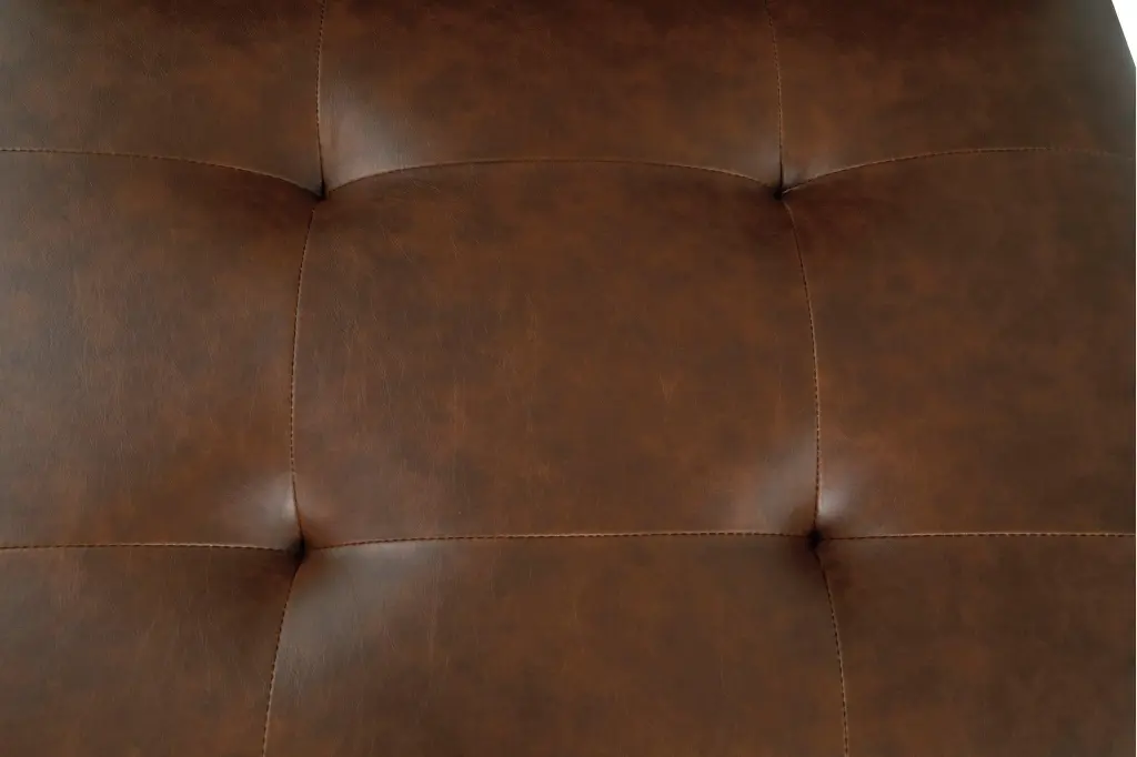 Inspired by the quintessential Barcelona chair, this contemporary accent chair with scissor base is high design on a comfortable budget. Fabulous faux leather is enhanced with button tufting. Armless design is an especially smart choice for small spaces.