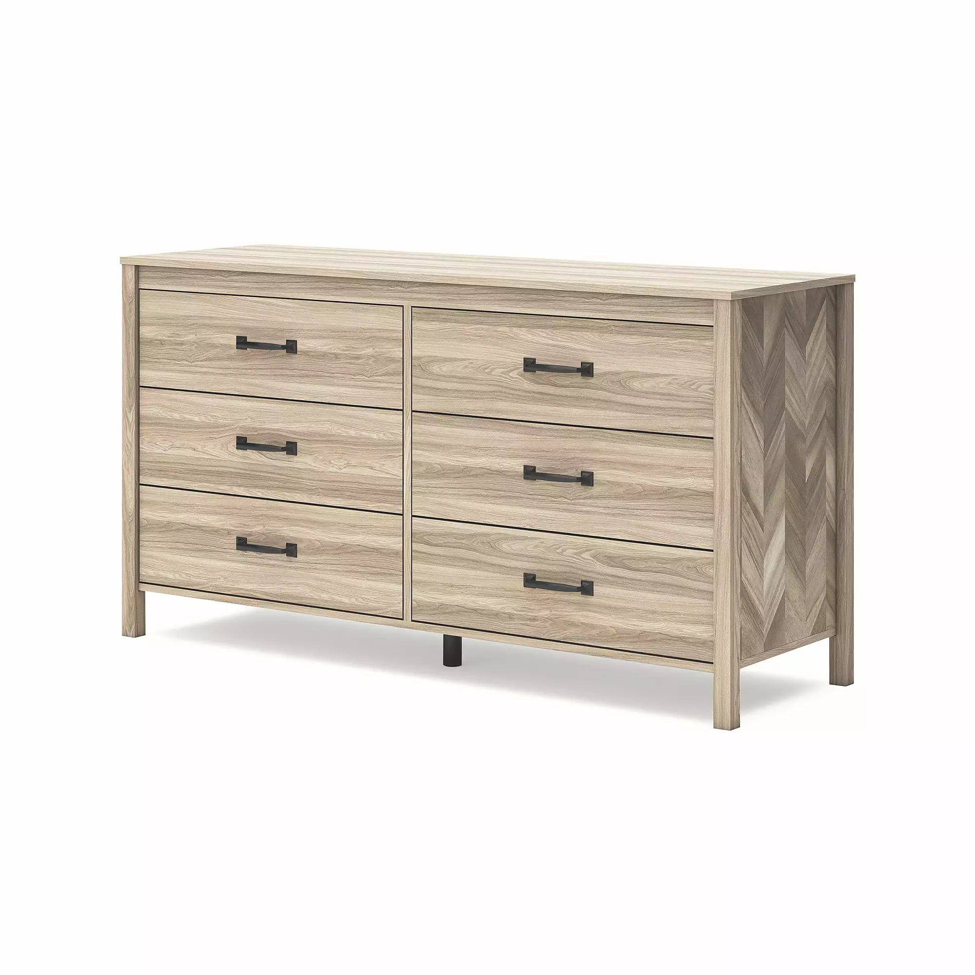 Transform your bedroom into an instant sanctuary. This dresser introduces a touch of mid-century modern style combining a two-tone finish and unique chevron pattern that is sure to enhance the design element to any bedroom. Six spacious drawers with ball bearing glides offer a smooth opening and closing of the drawers. Catering to your busy lifestyle and built to last. it is ready to assemble in the comfort of your home.