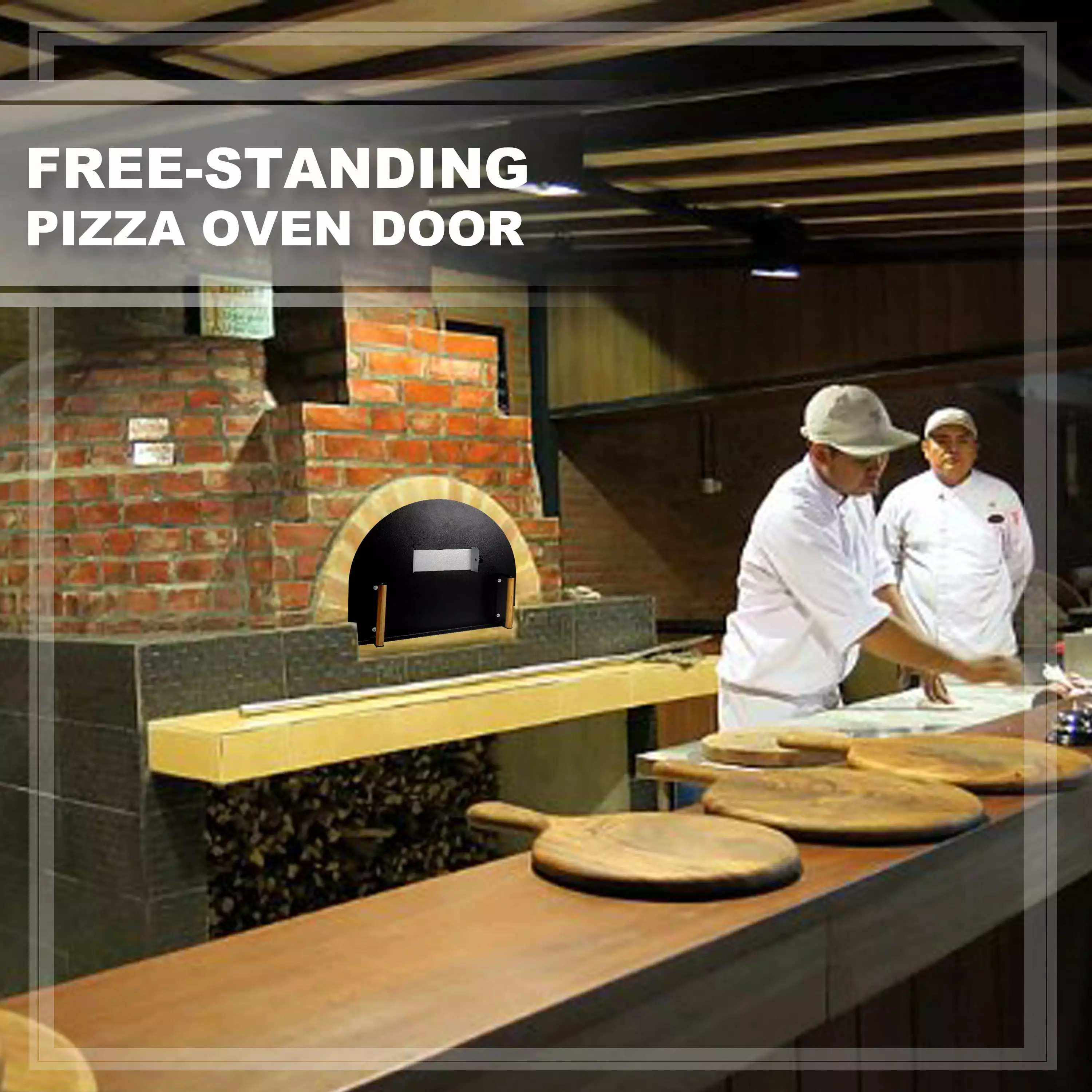 - APPLICATIONS: This pizza oven door is ideal for outdoor pizza ovens and most commercial ovens like bakeries. restaurants. condos. and pizzerias to maintain heat in the brick wood oven to bake foods perfectly.