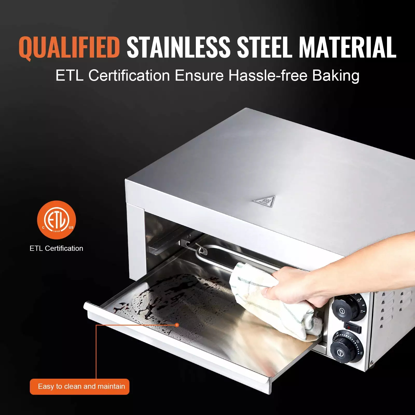 - You can enjoy crispy pizza every time: 1500 watts of large -power commercial pizza ovens allow you to bake crispy pizza in a few minutes. Coupled with the dual heating pipes at the top and bottom. it can achieve 360 evenly baking. sufficient heat. and can quickly cook perfect food each time.
