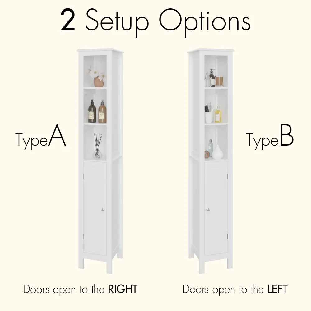 Slim Tall Bathroom Storage Cabinet With Variable Shelves, Anti Tip Freestanding Cabinet – White
