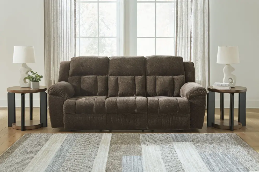 With its large-scale design, this extra-spacious reclining sofa is a masterclass in accessible style. Plush, ultra-soft upholstery keeps everyone cozy as you lounge with family or guests. In a neutral hue, it seamlessly suits different aesthetics as your taste changes. Time to relax? The sofa’s pull tab reclining empowers you to mellow out with ease.