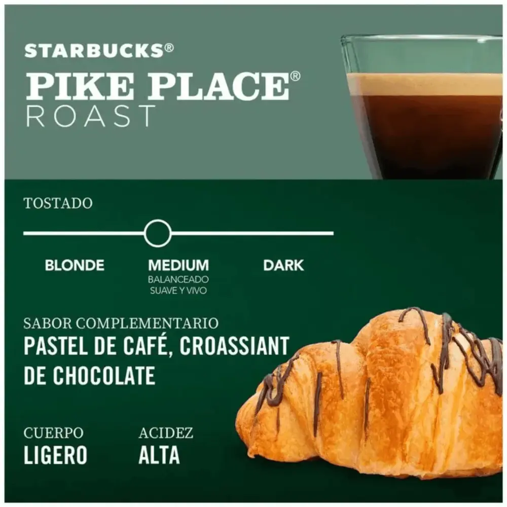 Starbucks Pike Place Roast es un café de tueste medio con un sabor suave y bien equilibrado. Su perfil combina notas de cacao y frutos secos tostados, ofreciendo una taza rica y aterciopelada. Inspirado en la primera tienda de Starbucks en Pike Place Market, este café es excellent para quienes buscan un sabor clásico y reconfortante en cada sorbo. Compatible con máquinas Nespresso.