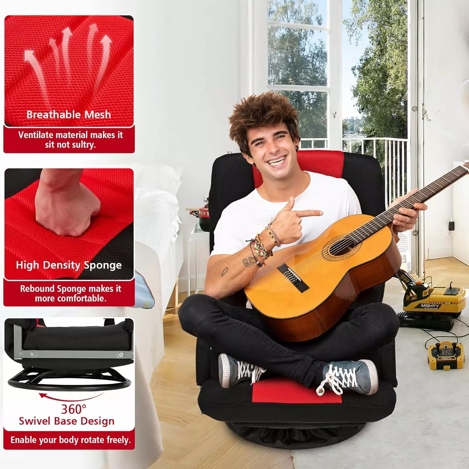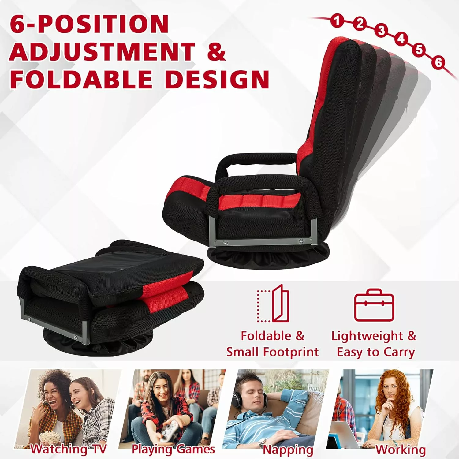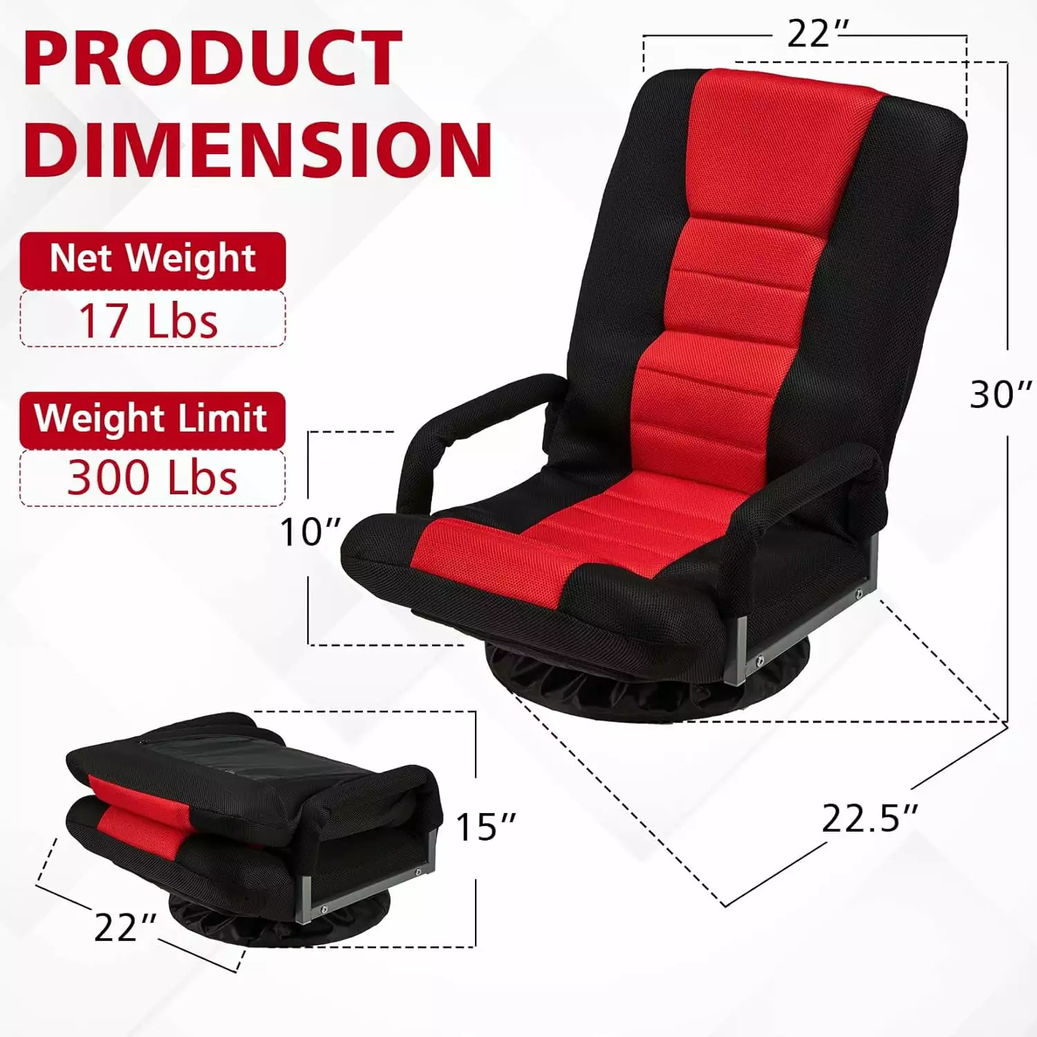 Swivel Gaming Chair 360 Degree Multipurpose Floor Chair Rocker for TV. Reading. Playing Video Games w/Lumbar Support. Armrest Handles. Adjustable Foldable Backrest.Red