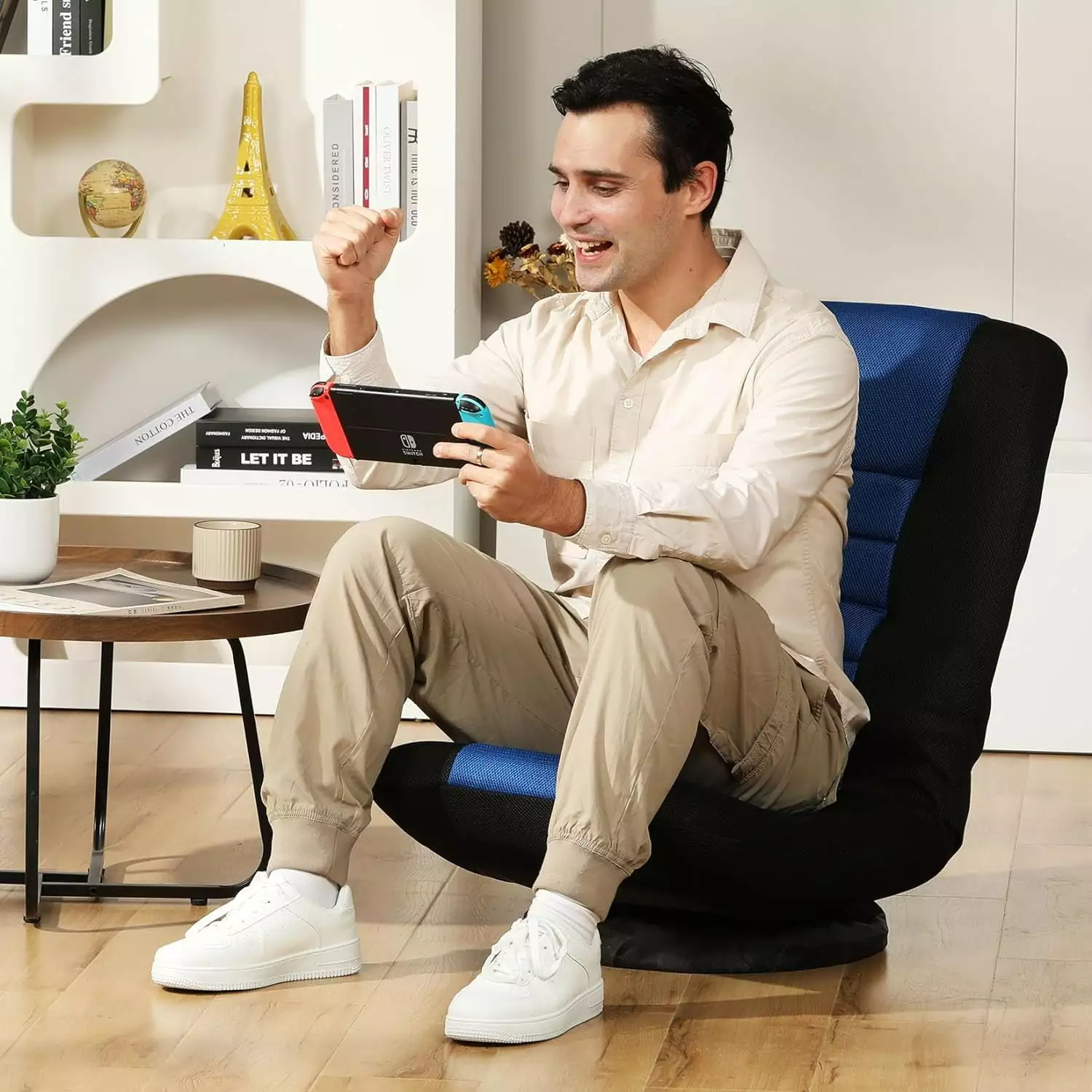 - **6 ADJUSTABLE POSITIONS**Our floor gaming chair can make you enjoying sitting experience with 6 different positions from 90** to 135**. You can play game. watch video or TV. reading. or take a nap. etc when reclining different angles. It will be a relaxing helper for you to relieve your pain in long-term sitting. Additionally. our floor chair features ergonomic design. which can support your neck. spine and hip.