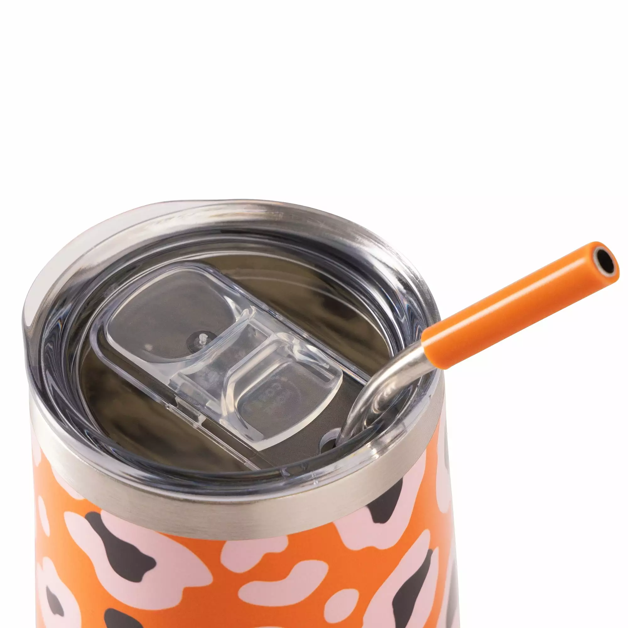 Meet the TAL Stainless Steel Wine Tumbler. Orange C your go-to for sipping joyfully on your favorite wines. This 16oz tumbler comes with a handy straw. adding a delightful twist to your sipping experience. Crafted with durable stainless steel. it’s the perfect companion for keeping your wine cool and refreshing. The sliding lid prevents splashing. making it a breeze for picnics. outdoor gatherings. or laid-back evenings. Easy to clean and built to last. this tumbler is a hassle-free addition to your wine-loving adventures. Whether you’re into reds. whites. or something in between. the TAL Stainless Steel Wine Tumbler with straw brings simplicity and fun to your sipping routine. Cheers to good times and easy sips! For product’s longevity. please hand wash.