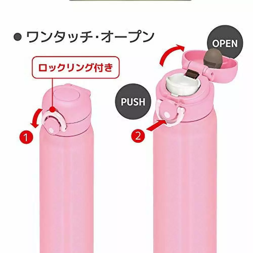 Size (approx.): 7 cm (width) x 7 cm (depth) x 23.5 cm (height). diameter / 4 cm;Material: Inner bottle/stainless steel. Body/stainless steel (acrylic resin coating). Mouthpiece/stainless steel. Lid cover/ABS resin. Lid and spout body/polypropylene. Drinking mouth/polypropylene. Lid and spout packing/silicone rubber;Country of origin:Philippines;Capacity: 600ml;Heat retention (6 hours): 70°C or more;Cold holding power (6 hours): 10 degrees or less Please note that some of the models are made exclusively for Japanese market. hence the specifications and interface language is all in Japanese and cannot be changed to a different language. Also the voltage is adopted for Japanese standard ~ 100V ## About us want.ip Inc (a group company of Yahoo Japan). the leading cross-border e-retailer of all kinds of Japan products. We source all the products from official distributors or manufactures] ## Overseas Shipping Information As this is an overseas delivery product. it may take up to 2~5 business days to ship out. However. there may be a slight delay depending on the local delivery status and customs procedures. ## import tax Prices shown include customs duty. There is no need for customers to separately pay customs duties to the delivery company. ## Item Stock The stock quantity of the purchased product may change from time to time and may be out of stock after ordering. If there is no stock. it may be canceled after notification. ## Warranty Since this product is manufactured for Japanese market. warranty is not supported in your country. ## Voltage For electronic equipment. it is recommended to use a transformer just in case. This is because electronic equipment for Japan is designed to be used at 100V. (Some products are globally compatible.) ## want.jp Return Policies All returns must include the following or it will be rejected and returned back to you at your cost: – Product purchased from want.jp – Original Condition. no physical damage – All accessories. manuals. warranty registration card. etc. – All return requests can be submitted with valid return reason selected within 30 days after the item ordered.Thermos Water bottle Vacuum insulated mobile mug One-touch open type pink 600ml JNR-601 P